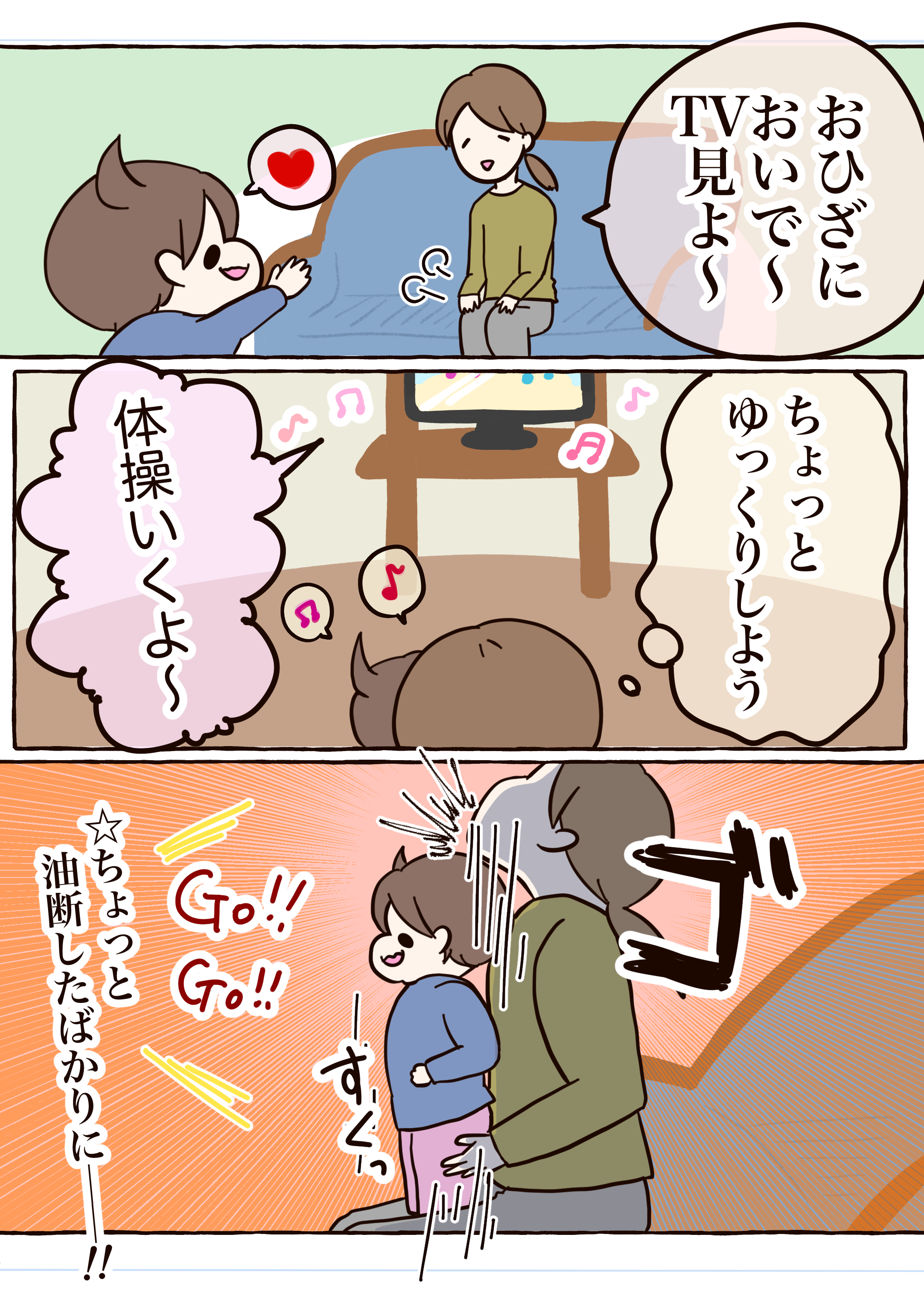 ちょっと油断するとこうだ 2021.11.16 日常 ちょっと油断するとこうだ あとがき しかもこれ舌噛んだからね😡 0 コメントはこちら 同じカテゴリの記事 ワンテンポ遅い親の気付き おしっこもってくの!? パパのアドバイスを受け止める 連載一覧 寒さ対策 不審者にならないために 赤ちゃんがうなる理由 インフルエンザの予防接種に行ってきた! 5歳の娘の不思議な質問!?【ASOPPA!連載】 毎年恒例のおせちの選び方! 雨の日にお外に行ってはいけないよ 臓器なのにかわいい? 子どもの心臓の音を聞いて親が気づいた大切なこと【ASOPPA!連載】 ヤマトじゃない 夫が北海道に行くらしい 撮ってると思って身構えたのに……主役はまさかの“そっち側”だった【ASOPPA!連載】 初めてのたこ焼き作るよ!【後編】 初めてのたこ焼き作るよ!【前編】 9月になったので年末の準備をはじめる! 園で拾ったピンクの石を交換した娘……ほっこりする話かと思いきや、まさかの展開に母ダッシュ【ASOPPA!連載】 LINEスタンプ、配信開始しました! 自信満々な5さい 祭りの花火、音と煙で怖いかな?泣いちゃうかな……!?【ASOPPA!連載】 「乗ってもいいの?」遠慮する5歳を飛行機ポーズで飛ばしてみたら…【ASOPPA!連載】 おしゃれな本棚を作りたい! ママみて!が止まらない 大人がうんていにチャレンジしたら、肩からすごい音が…【ASOPPA!連載】 たかた、全集中〇〇の型 お菓子警察、もう騙されない ママって魔法使い!?ペットボトルを使った水あそびでサイエンスごっこ【ASOPPA!連載】 セルフまつパにチャレンジしてみた話 ランドセルの話をしてただけなのに……先生の声が少し変わった瞬間のこと【ASOPPA!連載】とお知らせ なんにでも才能を見出しちゃう親 ママのヒントがまさかの罠!?しりとり中に飛び出した言い間違いに思わずにっこり【ASOPPA!連載】 無意識に自分を下げてしまうことがある かわいいすぎてずるいって話と書籍PR 星がふえると、なんだかうれしい!七夕の“飛ばし絵”あそび【ASOPPA!連載】 5さい、指先の皮がボロボロ… からあげってどんな味がする!? 君が生まれたばかりの世界は……5歳の誕生日に感じた子どもの成長【ASOPPA!連載】 わずかなヒントから答えを探し出せ! カレーうどんってどんな味?5歳の素直な感想にパパ思わず感心【ASOPPA!連載】 ダメージ加工ってさ… 「1たす1は11?」5歳児のピュアな計算ミスに母、胸キュン【ASOPPA!連載】 記念すべき?歯が抜けた話【後編】 記念すべき?歯が抜けた話【中編】 記念すべき?歯が抜けた話【前編】 各方面への配慮 懐かしくて、ちょっとしょっぱい。大人になって気づいた、駄菓子とのちょうどいい距離感【ASOPPA!連載】 緊張しいのたかた【後編】七五三の前撮り 緊張しいのたかた【前編】七五三の前撮り ここまでくるのに5年かかりました 生放送でお名前を呼ばれたい 泥団子を極めしもの ピーピー豆とおままごと 「パパだけ保育園に行くね」と言ったら、娘の返答がまさかの本気モードで笑っちゃう!【ASOPPA!連載】 見せたい自信作 ねぇ、あれってなんだっけ? ドレスを選ぶ基準【後編】七五三の前撮り ドレスを選ぶ基準【前編】七五三の前撮り 泣くのって悪いこと?【後編】 泣くのって悪いこと?【前編】 ありがとうじゃなくて……!?5歳にお礼を促した結果に笑っちゃう【ASOPPA!連載】 もう七五三するの!?【後編】 もう七五三するの!?【前編】 パパのおしり拭き おいしいお薬を食べてみた 君が赤ちゃんのときの話 一体何を見つけたの〜!?子どもと過ごす春は発見とハプニングの連続だ!【ASOPPA!連載】 ゆふいんの森号に乗りたい親子 2025春のパン祭り経過 冷蔵庫にゼリーがあるぞ! 「せ」の音はどこ?ピアノで遊ぶ4歳の純粋な疑問にパパ困惑 【ASOPPA!連載】 アマゾンってなに? タブレットに不正アクセスされた話 そろそろ「たかた」を卒業させたい 「まごわやさしい」の「い」はまさかの……!?4歳の自由すぎる発想に思わず笑顔に【ASOPPA!連載】 名前の練習ってどうする?我が家のゆるっと入園準備 【ASOPPA!連載】 ついにこの時がやってきた オンラインフィットネス「サーティフィット」で理想の体を目指す話④ ご報告 私もかわいいの!赤ちゃん時代の写真を見た4歳児の反応にほっこり【ASOPPA!連載】 今年もパン祭りがはじまった お散歩が楽しみすぎる4歳!着替えながらお片付け……できちゃうの!?【ASOPPA!連載】 4歳、歯科がこわい ほぼ売れ切れのご飯屋さんの正体 いつものおやつを特別にする?とびきりの裏技 かわいい4歳の指を借りて……バレンタインのかわいいお菓子を一緒に手作り【ASOPPA!連載】 オンラインフィットネス「サーティフィット」で理想の体を目指す話③ 断られても気にしないメンタル 疲れた母をどうにかする4才 手に余ったクリームを… 体調が悪くなると変な想像するよね? 2025年節分 我が家にあらわれたオニ(4歳) パパ、だいすきだからここをあけてよ パパなんてしらないッ! えっ!?それで納得!?「お寿司を焼いて!」4歳の無理難題を、父、解決!【ASOPPA!連載】 4歳、演技指導する うちの夫はスー