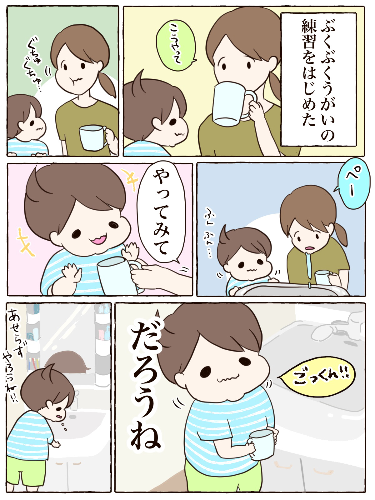 歯科検診でうがいができれば虫歯リスクが全然違うと聞いたので、ぶくぶくうがいの練習をはじめた!