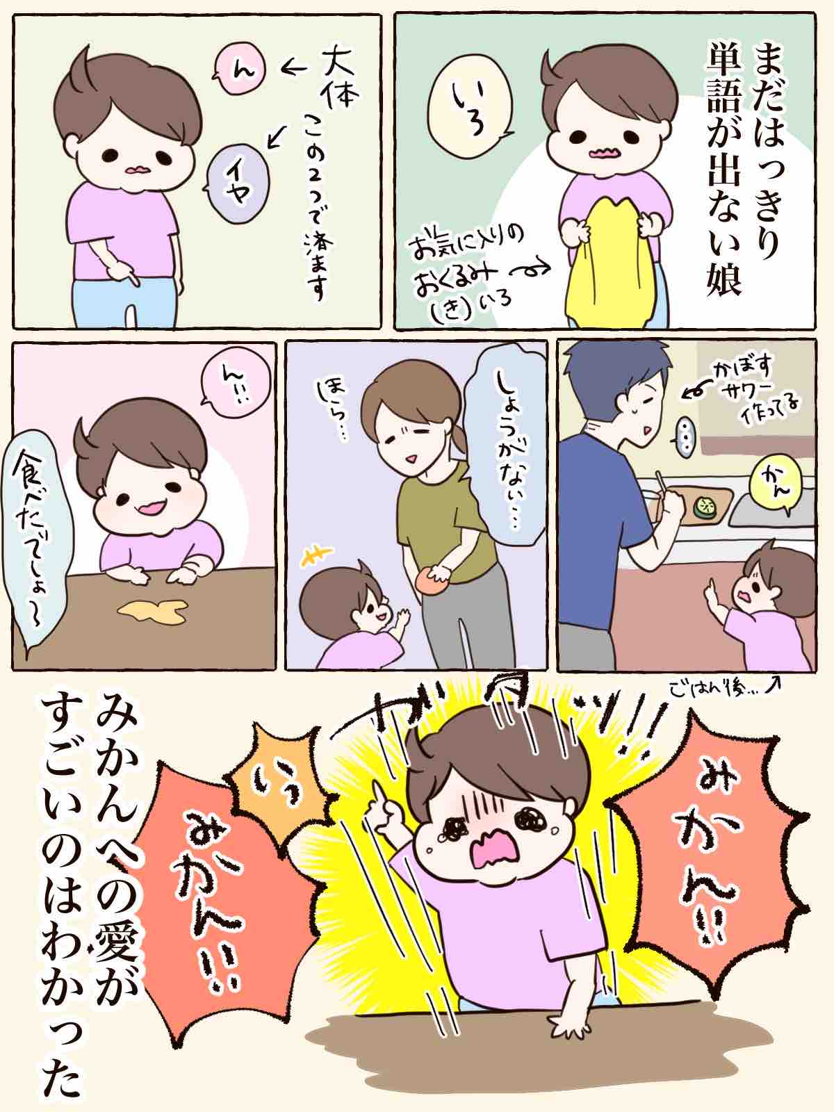 はっきりした単語ほとんど出ないのにみかんだけはハッキリ話せるよ!😂