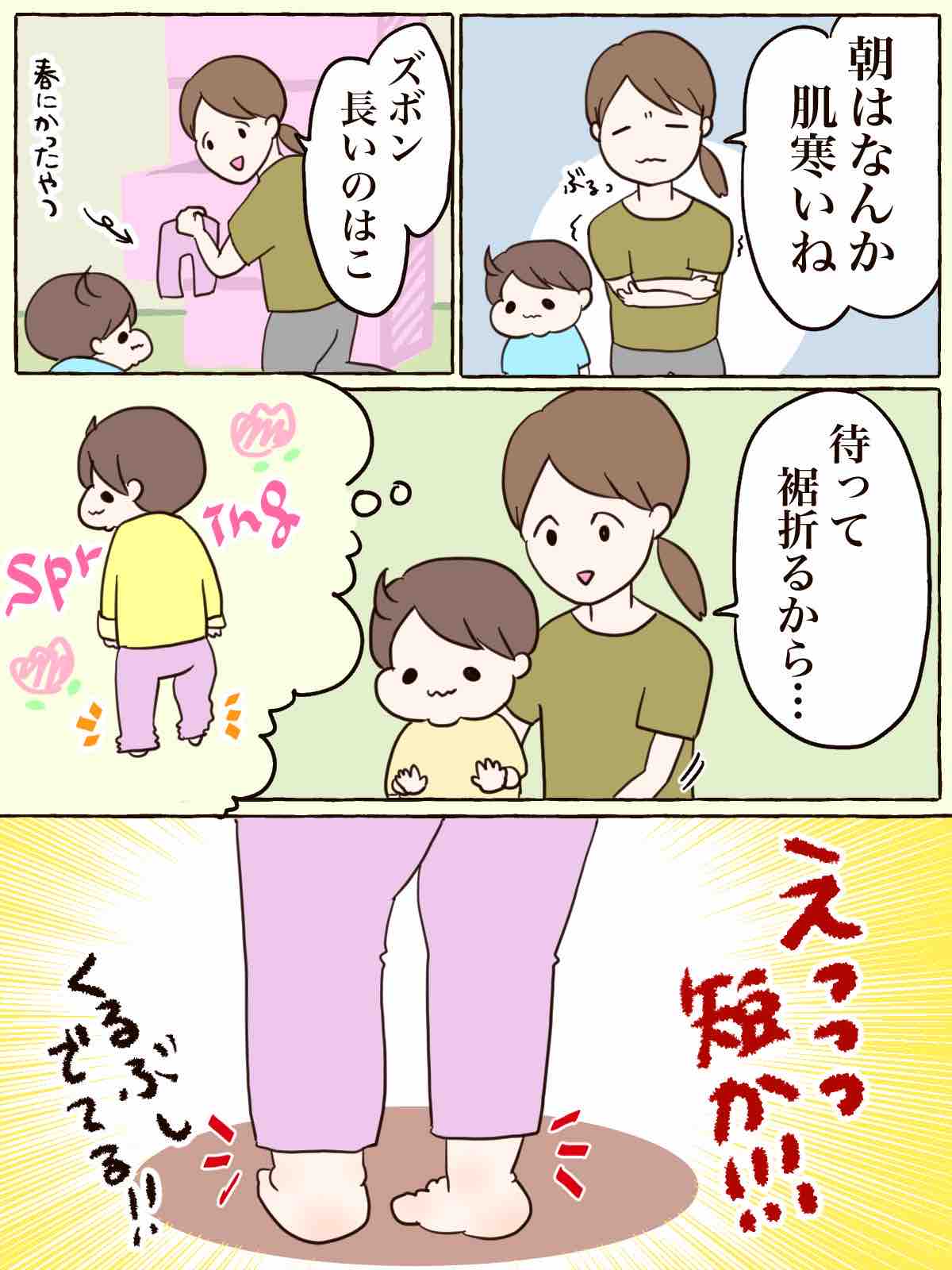 サイズアウトの早さに衝撃が走ってる🤪もしかして来年の秋は着られない感じなの…?七分丈ってことでいいよね??😭