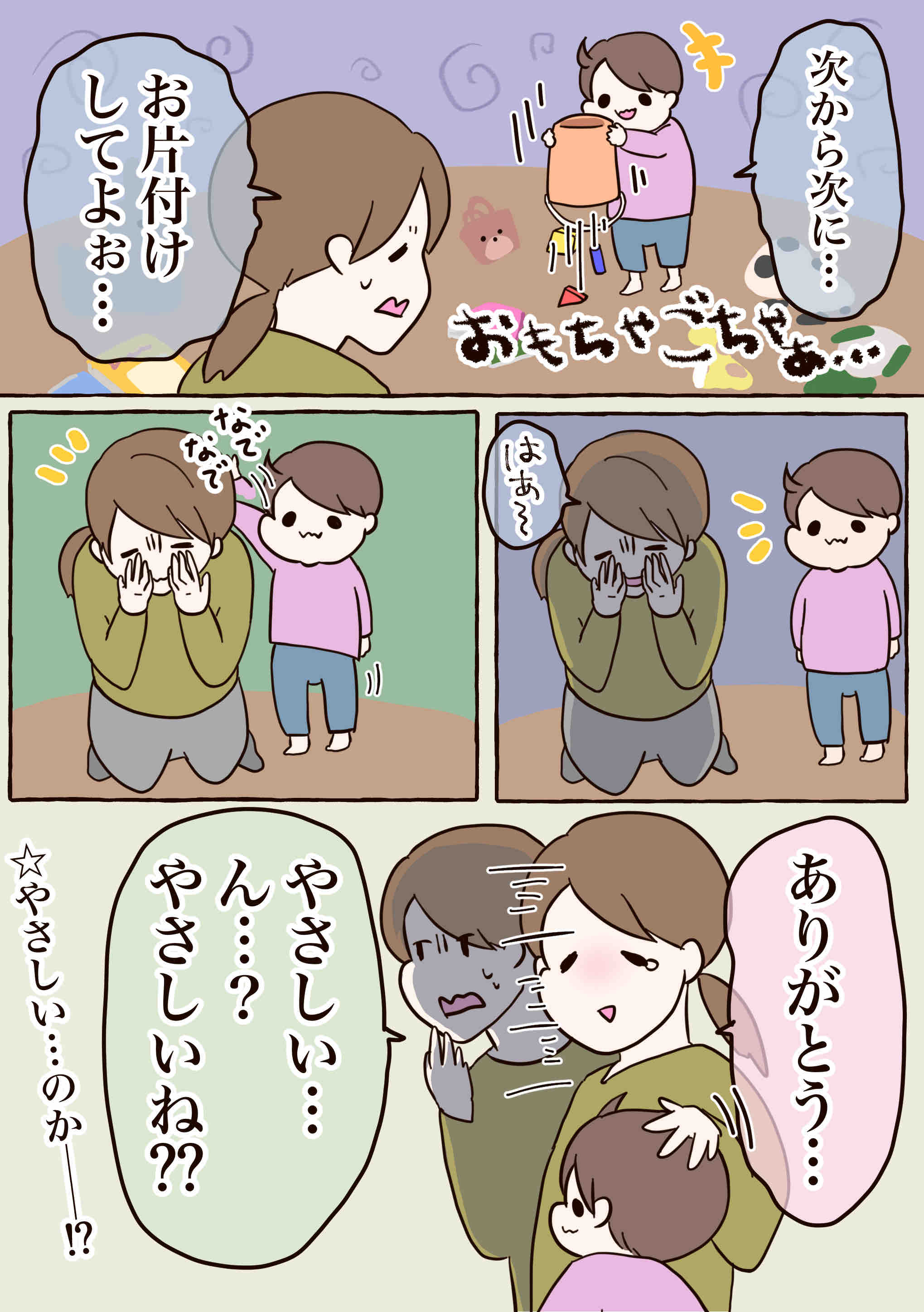 やさしさとは…? 2021.12.03 日常 やさしさとは…? あとがき 落ち込んだ母にやさしくする←やさしい 母が落ち込む原因←部屋が片付かない 部屋が片付かない原因←たかた うーん…別問題だからやさしいな! うん!やさしい!!👏 0 コメントはこちら 同じカテゴリの記事 ワンテンポ遅い親の気付き おしっこもってくの!? パパのアドバイスを受け止める 連載一覧 寒さ対策 不審者にならないために 赤ちゃんがうなる理由 インフルエンザの予防接種に行ってきた! 5歳の娘の不思議な質問!?【ASOPPA!連載】 毎年恒例のおせちの選び方! 雨の日にお外に行ってはいけないよ 臓器なのにかわいい? 子どもの心臓の音を聞いて親が気づいた大切なこと【ASOPPA!連載】 ヤマトじゃない 夫が北海道に行くらしい 撮ってると思って身構えたのに……主役はまさかの“そっち側”だった【ASOPPA!連載】 初めてのたこ焼き作るよ!【後編】 初めてのたこ焼き作るよ!【前編】 9月になったので年末の準備をはじめる! 園で拾ったピンクの石を交換した娘……ほっこりする話かと思いきや、まさかの展開に母ダッシュ【ASOPPA!連載】 LINEスタンプ、配信開始しました! 自信満々な5さい 祭りの花火、音と煙で怖いかな?泣いちゃうかな……!?【ASOPPA!連載】 「乗ってもいいの?」遠慮する5歳を飛行機ポーズで飛ばしてみたら…【ASOPPA!連載】 おしゃれな本棚を作りたい! ママみて!が止まらない 大人がうんていにチャレンジしたら、肩からすごい音が…【ASOPPA!連載】 たかた、全集中〇〇の型 お菓子警察、もう騙されない ママって魔法使い!?ペットボトルを使った水あそびでサイエンスごっこ【ASOPPA!連載】 セルフまつパにチャレンジしてみた話 ランドセルの話をしてただけなのに……先生の声が少し変わった瞬間のこと【ASOPPA!連載】とお知らせ なんにでも才能を見出しちゃう親 ママのヒントがまさかの罠!?しりとり中に飛び出した言い間違いに思わずにっこり【ASOPPA!連載】 無意識に自分を下げてしまうことがある かわいいすぎてずるいって話と書籍PR 星がふえると、なんだかうれしい!七夕の“飛ばし絵”あそび【ASOPPA!連載】 5さい、指先の皮がボロボロ… からあげってどんな味がする!? 君が生まれたばかりの世界は……5歳の誕生日に感じた子どもの成長【ASOPPA!連載】 わずかなヒントから答えを探し出せ! カレーうどんってどんな味?5歳の素直な感想にパパ思わず感心【ASOPPA!連載】 ダメージ加工ってさ… 「1たす1は11?」5歳児のピュアな計算ミスに母、胸キュン【ASOPPA!連載】 記念すべき?歯が抜けた話【後編】 記念すべき?歯が抜けた話【中編】 記念すべき?歯が抜けた話【前編】 各方面への配慮 懐かしくて、ちょっとしょっぱい。大人になって気づいた、駄菓子とのちょうどいい距離感【ASOPPA!連載】 緊張しいのたかた【後編】七五三の前撮り 緊張しいのたかた【前編】七五三の前撮り ここまでくるのに5年かかりました 生放送でお名前を呼ばれたい 泥団子を極めしもの ピーピー豆とおままごと 「パパだけ保育園に行くね」と言ったら、娘の返答がまさかの本気モードで笑っちゃう!【ASOPPA!連載】 見せたい自信作 ねぇ、あれってなんだっけ? ドレスを選ぶ基準【後編】七五三の前撮り ドレスを選ぶ基準【前編】七五三の前撮り 泣くのって悪いこと?【後編】 泣くのって悪いこと?【前編】 ありがとうじゃなくて……!?5歳にお礼を促した結果に笑っちゃう【ASOPPA!連載】 もう七五三するの!?【後編】 もう七五三するの!?【前編】 パパのおしり拭き おいしいお薬を食べてみた 君が赤ちゃんのときの話 一体何を見つけたの〜!?子どもと過ごす春は発見とハプニングの連続だ!【ASOPPA!連載】 ゆふいんの森号に乗りたい親子 2025春のパン祭り経過 冷蔵庫にゼリーがあるぞ! 「せ」の音はどこ?ピアノで遊ぶ4歳の純粋な疑問にパパ困惑 【ASOPPA!連載】 アマゾンってなに? タブレットに不正アクセスされた話 そろそろ「たかた」を卒業させたい 「まごわやさしい」の「い」はまさかの……!?4歳の自由すぎる発想に思わず笑顔に【ASOPPA!連載】 名前の練習ってどうする?我が家のゆるっと入園準備 【ASOPPA!連載】 ついにこの時がやってきた オンラインフィットネス「サーティフィット」で理想の体を目指す話④ ご報告 私もかわいいの!赤ちゃん時代の写真を見た4歳児の反応にほっこり【ASOPPA!連載】 今年もパン祭りがはじまった お散歩が楽しみすぎる4歳!着替えながらお片付け……できちゃうの!?【ASOPPA!連載】 4歳、歯科がこわい ほぼ売れ切れのご飯屋さんの正体 いつものおやつを特別にする?とびきりの裏技 かわいい4歳の指を借りて……バレンタインのかわいいお菓子を一緒に手作り【ASOPPA!連載】 オンラインフィットネス「サーティフィット」で理想の体を目指す話③ 断られても気にしないメンタル 疲れた母をどうにかする4才 手に余ったクリームを… 体調が悪くなると変な想像するよね? 2025年節分 我が家にあらわれたオニ(4歳) パパ、だいすきだからここをあけてよ パパなんてしらないッ! え