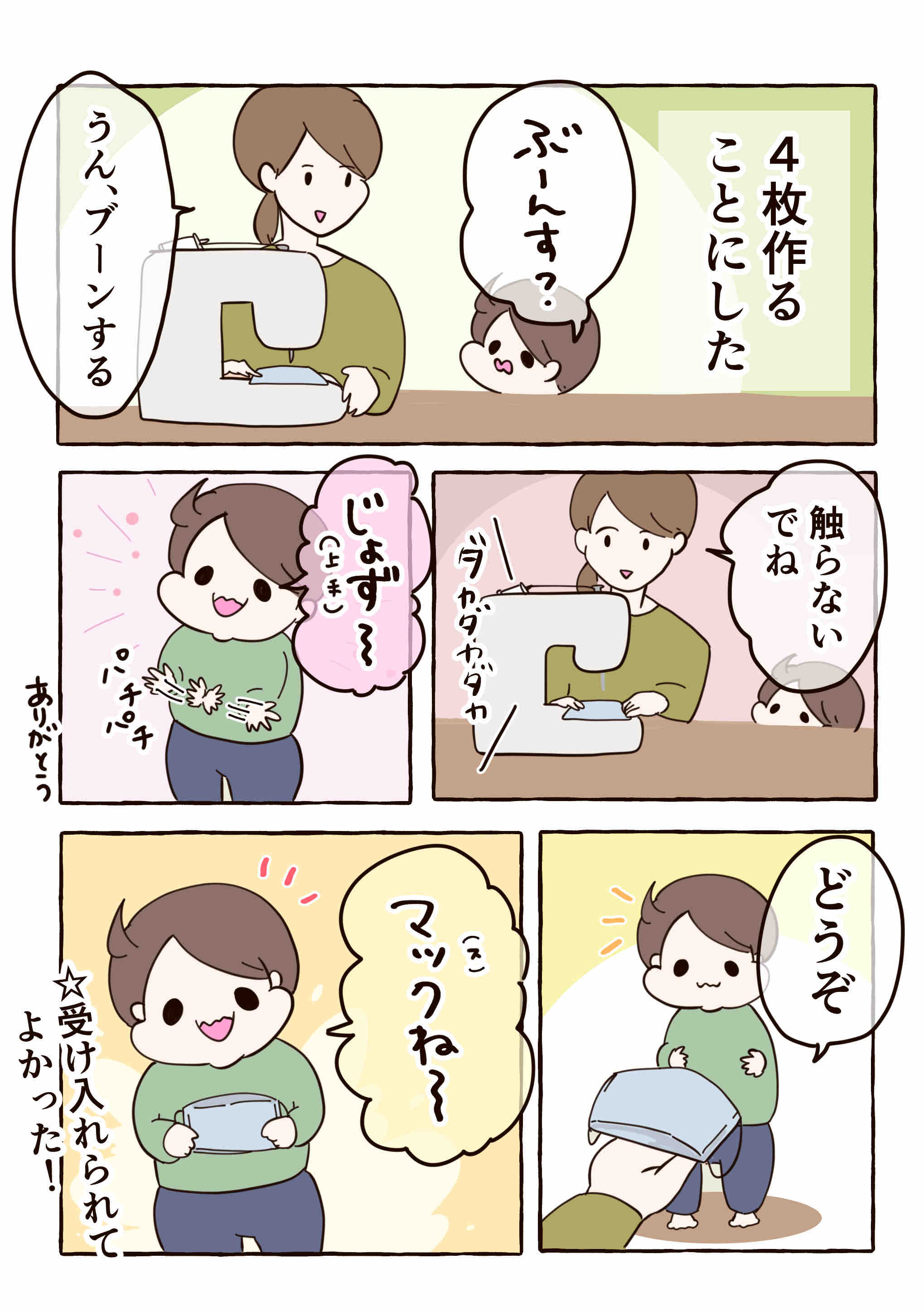 1歳児、マスクはじめました 2022.02.24 日常 1歳児、マスクはじめました あとがき もうすぐ2歳なのでマスク作った話! 一瞬だけなら受け入れてくれる!秒で外されるけど😂3歳までにつけられるようになるといいね〜🙌 0 コメントはこちら 同じカテゴリの記事 ワンテンポ遅い親の気付き おしっこもってくの!? パパのアドバイスを受け止める 連載一覧 寒さ対策 不審者にならないために 赤ちゃんがうなる理由 インフルエンザの予防接種に行ってきた! 5歳の娘の不思議な質問!?【ASOPPA!連載】 毎年恒例のおせちの選び方! 雨の日にお外に行ってはいけないよ 臓器なのにかわいい? 子どもの心臓の音を聞いて親が気づいた大切なこと【ASOPPA!連載】 ヤマトじゃない 夫が北海道に行くらしい 撮ってると思って身構えたのに……主役はまさかの“そっち側”だった【ASOPPA!連載】 初めてのたこ焼き作るよ!【後編】 初めてのたこ焼き作るよ!【前編】 9月になったので年末の準備をはじめる! 園で拾ったピンクの石を交換した娘……ほっこりする話かと思いきや、まさかの展開に母ダッシュ【ASOPPA!連載】 LINEスタンプ、配信開始しました! 自信満々な5さい 祭りの花火、音と煙で怖いかな?泣いちゃうかな……!?【ASOPPA!連載】 「乗ってもいいの?」遠慮する5歳を飛行機ポーズで飛ばしてみたら…【ASOPPA!連載】 おしゃれな本棚を作りたい! ママみて!が止まらない 大人がうんていにチャレンジしたら、肩からすごい音が…【ASOPPA!連載】 たかた、全集中〇〇の型 お菓子警察、もう騙されない ママって魔法使い!?ペットボトルを使った水あそびでサイエンスごっこ【ASOPPA!連載】 セルフまつパにチャレンジしてみた話 ランドセルの話をしてただけなのに……先生の声が少し変わった瞬間のこと【ASOPPA!連載】とお知らせ なんにでも才能を見出しちゃう親 ママのヒントがまさかの罠!?しりとり中に飛び出した言い間違いに思わずにっこり【ASOPPA!連載】 無意識に自分を下げてしまうことがある かわいいすぎてずるいって話と書籍PR 星がふえると、なんだかうれしい!七夕の“飛ばし絵”あそび【ASOPPA!連載】 5さい、指先の皮がボロボロ… からあげってどんな味がする!? 君が生まれたばかりの世界は……5歳の誕生日に感じた子どもの成長【ASOPPA!連載】 わずかなヒントから答えを探し出せ! カレーうどんってどんな味?5歳の素直な感想にパパ思わず感心【ASOPPA!連載】 ダメージ加工ってさ… 「1たす1は11?」5歳児のピュアな計算ミスに母、胸キュン【ASOPPA!連載】 記念すべき?歯が抜けた話【後編】 記念すべき?歯が抜けた話【中編】 記念すべき?歯が抜けた話【前編】 各方面への配慮 懐かしくて、ちょっとしょっぱい。大人になって気づいた、駄菓子とのちょうどいい距離感【ASOPPA!連載】 緊張しいのたかた【後編】七五三の前撮り 緊張しいのたかた【前編】七五三の前撮り ここまでくるのに5年かかりました 生放送でお名前を呼ばれたい 泥団子を極めしもの ピーピー豆とおままごと 「パパだけ保育園に行くね」と言ったら、娘の返答がまさかの本気モードで笑っちゃう!【ASOPPA!連載】 見せたい自信作 ねぇ、あれってなんだっけ? ドレスを選ぶ基準【後編】七五三の前撮り ドレスを選ぶ基準【前編】七五三の前撮り 泣くのって悪いこと?【後編】 泣くのって悪いこと?【前編】 ありがとうじゃなくて……!?5歳にお礼を促した結果に笑っちゃう【ASOPPA!連載】 もう七五三するの!?【後編】 もう七五三するの!?【前編】 パパのおしり拭き おいしいお薬を食べてみた 君が赤ちゃんのときの話 一体何を見つけたの〜!?子どもと過ごす春は発見とハプニングの連続だ!【ASOPPA!連載】 ゆふいんの森号に乗りたい親子 2025春のパン祭り経過 冷蔵庫にゼリーがあるぞ! 「せ」の音はどこ?ピアノで遊ぶ4歳の純粋な疑問にパパ困惑 【ASOPPA!連載】 アマゾンってなに? タブレットに不正アクセスされた話 そろそろ「たかた」を卒業させたい 「まごわやさしい」の「い」はまさかの……!?4歳の自由すぎる発想に思わず笑顔に【ASOPPA!連載】 名前の練習ってどうする?我が家のゆるっと入園準備 【ASOPPA!連載】 ついにこの時がやってきた オンラインフィットネス「サーティフィット」で理想の体を目指す話④ ご報告 私もかわいいの!赤ちゃん時代の写真を見た4歳児の反応にほっこり【ASOPPA!連載】 今年もパン祭りがはじまった お散歩が楽しみすぎる4歳!着替えながらお片付け……できちゃうの!?【ASOPPA!連載】 4歳、歯科がこわい ほぼ売れ切れのご飯屋さんの正体 いつものおやつを特別にする?とびきりの裏技 かわいい4歳の指を借りて……バレンタインのかわいいお菓子を一緒に手作り【ASOPPA!連載】 オンラインフィットネス「サーティフィット」で理想の体を目指す話③ 断られても気にしないメンタル 疲れた母をどうにかする4才 手に余ったクリームを… 体調が悪くなると変な想像するよね? 2025年節分 我が家にあらわれたオニ(4歳) パパ、だいすきだからここをあけてよ パパなんてしらないッ! えっ!?それ