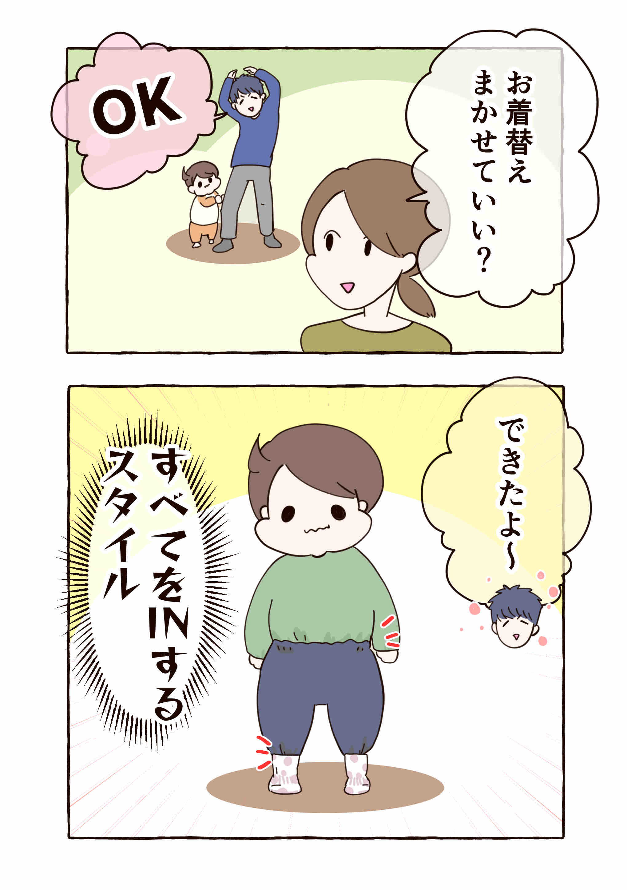 夫に着替えを任せると絶妙にダサくなる 2022.02.26 日常 夫に着替えを任せると絶妙にダサくなる あとがき なぜ靴下の中にズボンの裾を入れちゃうのか😂 0 コメントはこちら 同じカテゴリの記事 ワンテンポ遅い親の気付き おしっこもってくの!? パパのアドバイスを受け止める 連載一覧 寒さ対策 不審者にならないために 赤ちゃんがうなる理由 インフルエンザの予防接種に行ってきた! 5歳の娘の不思議な質問!?【ASOPPA!連載】 毎年恒例のおせちの選び方! 雨の日にお外に行ってはいけないよ 臓器なのにかわいい? 子どもの心臓の音を聞いて親が気づいた大切なこと【ASOPPA!連載】 ヤマトじゃない 夫が北海道に行くらしい 撮ってると思って身構えたのに……主役はまさかの“そっち側”だった【ASOPPA!連載】 初めてのたこ焼き作るよ!【後編】 初めてのたこ焼き作るよ!【前編】 9月になったので年末の準備をはじめる! 園で拾ったピンクの石を交換した娘……ほっこりする話かと思いきや、まさかの展開に母ダッシュ【ASOPPA!連載】 LINEスタンプ、配信開始しました! 自信満々な5さい 祭りの花火、音と煙で怖いかな?泣いちゃうかな……!?【ASOPPA!連載】 「乗ってもいいの?」遠慮する5歳を飛行機ポーズで飛ばしてみたら…【ASOPPA!連載】 おしゃれな本棚を作りたい! ママみて!が止まらない 大人がうんていにチャレンジしたら、肩からすごい音が…【ASOPPA!連載】 たかた、全集中〇〇の型 お菓子警察、もう騙されない ママって魔法使い!?ペットボトルを使った水あそびでサイエンスごっこ【ASOPPA!連載】 セルフまつパにチャレンジしてみた話 ランドセルの話をしてただけなのに……先生の声が少し変わった瞬間のこと【ASOPPA!連載】とお知らせ なんにでも才能を見出しちゃう親 ママのヒントがまさかの罠!?しりとり中に飛び出した言い間違いに思わずにっこり【ASOPPA!連載】 無意識に自分を下げてしまうことがある かわいいすぎてずるいって話と書籍PR 星がふえると、なんだかうれしい!七夕の“飛ばし絵”あそび【ASOPPA!連載】 5さい、指先の皮がボロボロ… からあげってどんな味がする!? 君が生まれたばかりの世界は……5歳の誕生日に感じた子どもの成長【ASOPPA!連載】 わずかなヒントから答えを探し出せ! カレーうどんってどんな味?5歳の素直な感想にパパ思わず感心【ASOPPA!連載】 ダメージ加工ってさ… 「1たす1は11?」5歳児のピュアな計算ミスに母、胸キュン【ASOPPA!連載】 記念すべき?歯が抜けた話【後編】 記念すべき?歯が抜けた話【中編】 記念すべき?歯が抜けた話【前編】 各方面への配慮 懐かしくて、ちょっとしょっぱい。大人になって気づいた、駄菓子とのちょうどいい距離感【ASOPPA!連載】 緊張しいのたかた【後編】七五三の前撮り 緊張しいのたかた【前編】七五三の前撮り ここまでくるのに5年かかりました 生放送でお名前を呼ばれたい 泥団子を極めしもの ピーピー豆とおままごと 「パパだけ保育園に行くね」と言ったら、娘の返答がまさかの本気モードで笑っちゃう!【ASOPPA!連載】 見せたい自信作 ねぇ、あれってなんだっけ? ドレスを選ぶ基準【後編】七五三の前撮り ドレスを選ぶ基準【前編】七五三の前撮り 泣くのって悪いこと?【後編】 泣くのって悪いこと?【前編】 ありがとうじゃなくて……!?5歳にお礼を促した結果に笑っちゃう【ASOPPA!連載】 もう七五三するの!?【後編】 もう七五三するの!?【前編】 パパのおしり拭き おいしいお薬を食べてみた 君が赤ちゃんのときの話 一体何を見つけたの〜!?子どもと過ごす春は発見とハプニングの連続だ!【ASOPPA!連載】 ゆふいんの森号に乗りたい親子 2025春のパン祭り経過 冷蔵庫にゼリーがあるぞ! 「せ」の音はどこ?ピアノで遊ぶ4歳の純粋な疑問にパパ困惑 【ASOPPA!連載】 アマゾンってなに? タブレットに不正アクセスされた話 そろそろ「たかた」を卒業させたい 「まごわやさしい」の「い」はまさかの……!?4歳の自由すぎる発想に思わず笑顔に【ASOPPA!連載】 名前の練習ってどうする?我が家のゆるっと入園準備 【ASOPPA!連載】 ついにこの時がやってきた オンラインフィットネス「サーティフィット」で理想の体を目指す話④ ご報告 私もかわいいの!赤ちゃん時代の写真を見た4歳児の反応にほっこり【ASOPPA!連載】 今年もパン祭りがはじまった お散歩が楽しみすぎる4歳!着替えながらお片付け……できちゃうの!?【ASOPPA!連載】 4歳、歯科がこわい ほぼ売れ切れのご飯屋さんの正体 いつものおやつを特別にする?とびきりの裏技 かわいい4歳の指を借りて……バレンタインのかわいいお菓子を一緒に手作り【ASOPPA!連載】 オンラインフィットネス「サーティフィット」で理想の体を目指す話③ 断られても気にしないメンタル 疲れた母をどうにかする4才 手に余ったクリームを… 体調が悪くなると変な想像するよね? 2025年節分 我が家にあらわれたオニ(4歳) パパ、だいすきだからここをあけてよ パパなんてしらないッ! えっ!?それで納得!?「お寿司を焼いて!」4歳の無理難題を、父、解決!【ASOP