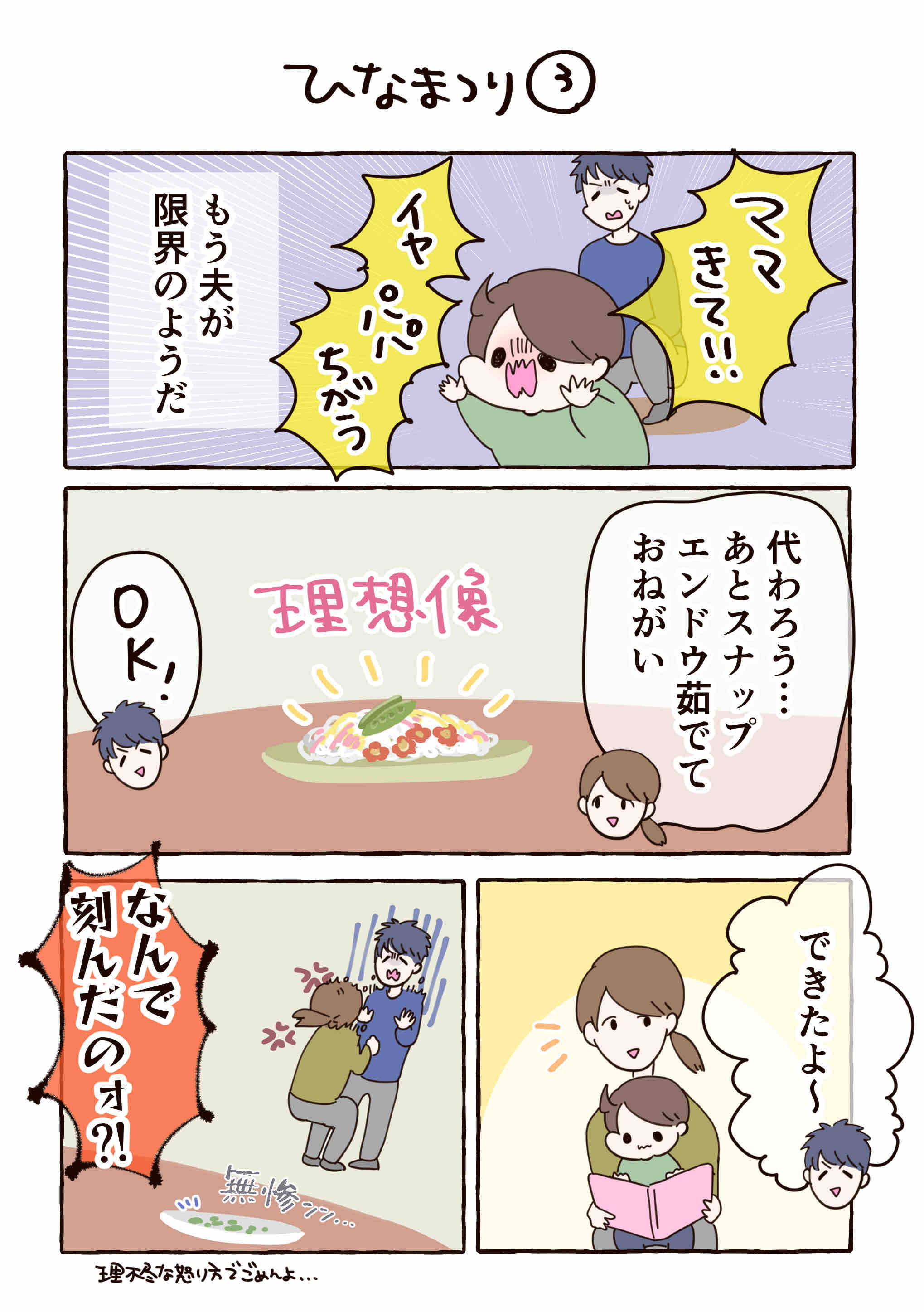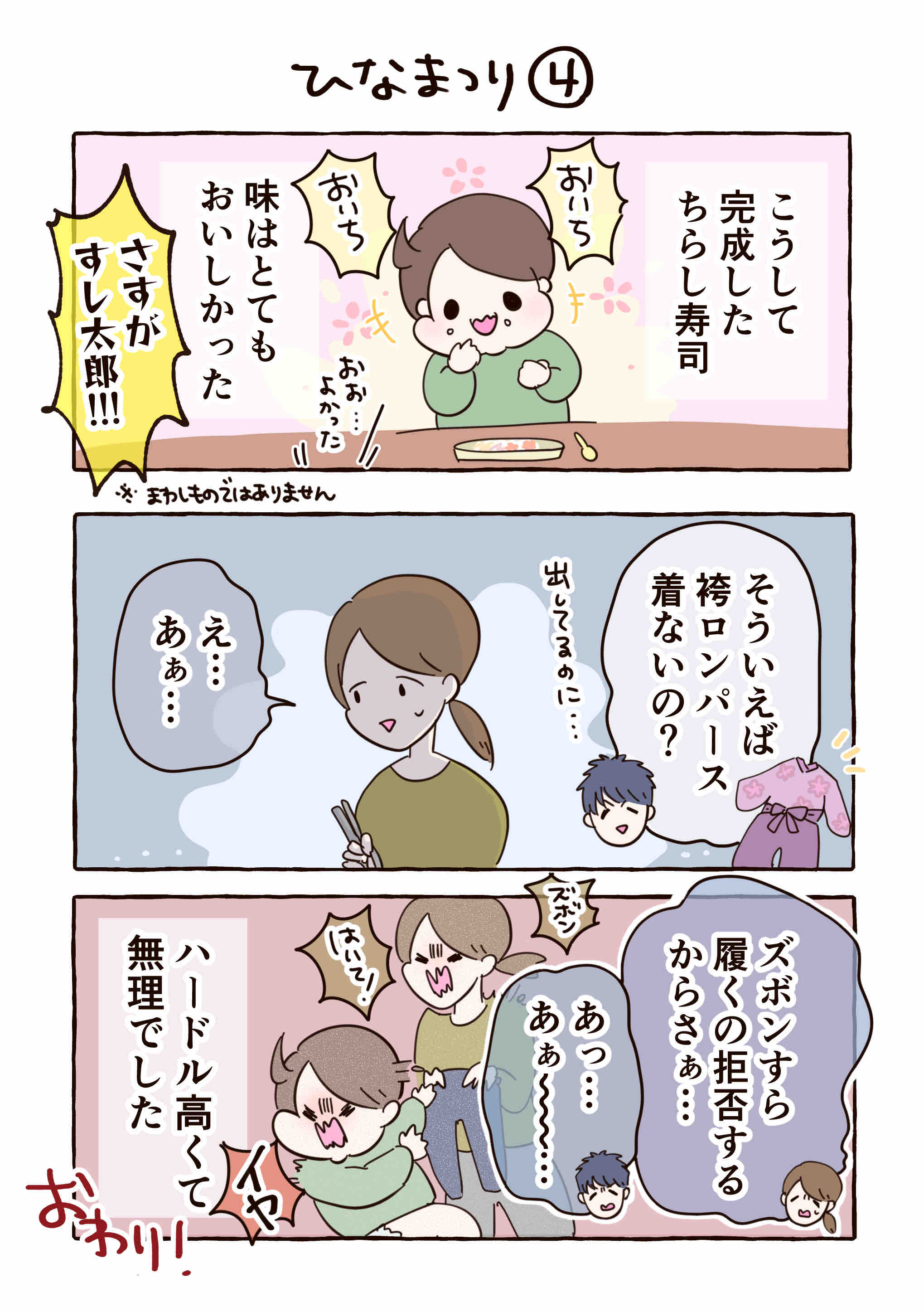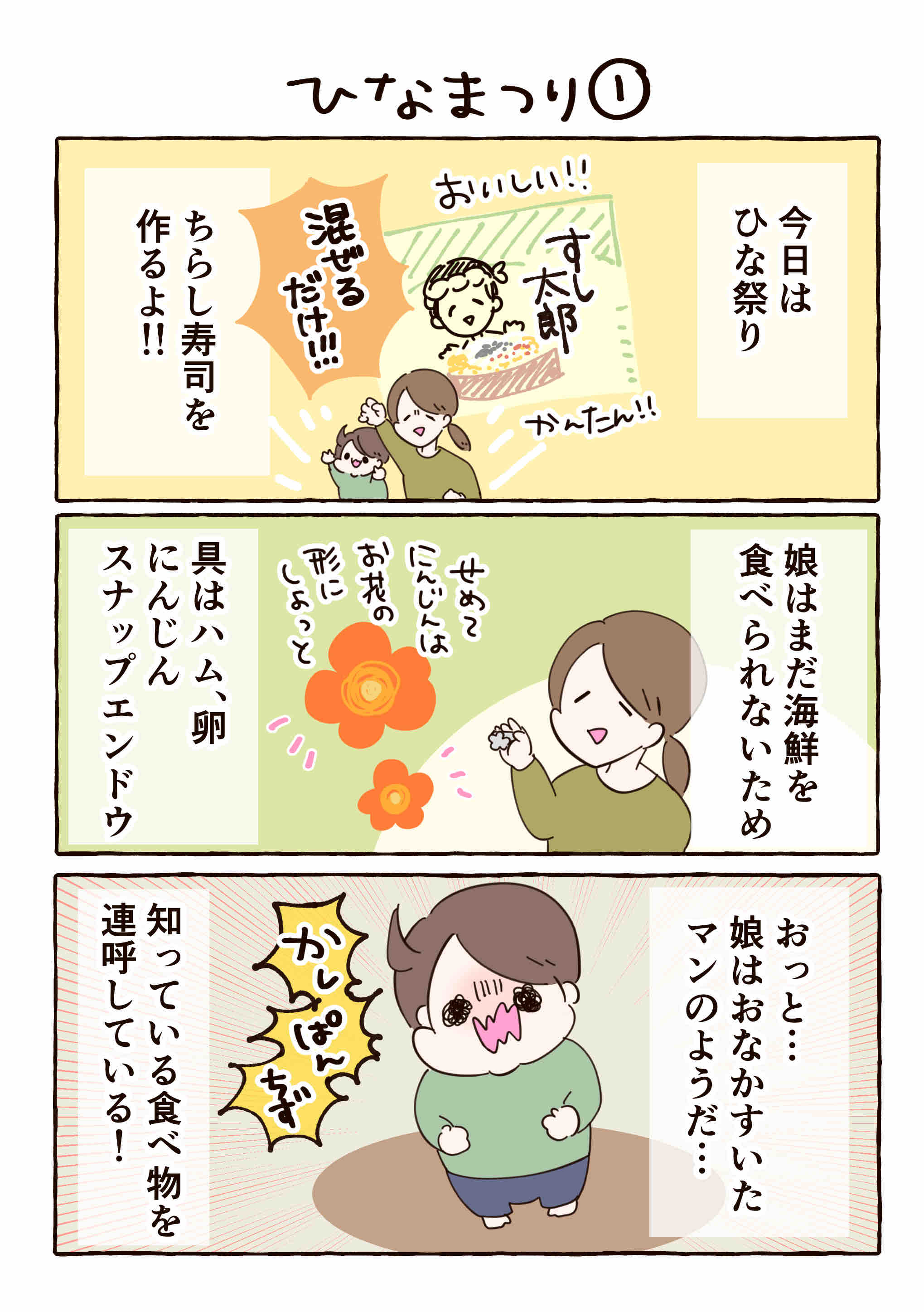 ひなまつりの話 2022.03.04 日常 ひなまつりの話 あとがき 今年のひな祭りのはなし🎎 やっぱちらし寿司はすし太郎でしょ😘夫が刻んだスナップエンドウを見た目だけでも元通りに…って並べてて笑った😂怒ってごめんね😉 0 コメントはこちら 同じカテゴリの記事 ワンテンポ遅い親の気付き おしっこもってくの!? パパのアドバイスを受け止める 連載一覧 寒さ対策 不審者にならないために 赤ちゃんがうなる理由 インフルエンザの予防接種に行ってきた! 5歳の娘の不思議な質問!?【ASOPPA!連載】 毎年恒例のおせちの選び方! 雨の日にお外に行ってはいけないよ 臓器なのにかわいい? 子どもの心臓の音を聞いて親が気づいた大切なこと【ASOPPA!連載】 ヤマトじゃない 夫が北海道に行くらしい 撮ってると思って身構えたのに……主役はまさかの“そっち側”だった【ASOPPA!連載】 初めてのたこ焼き作るよ!【後編】 初めてのたこ焼き作るよ!【前編】 9月になったので年末の準備をはじめる! 園で拾ったピンクの石を交換した娘……ほっこりする話かと思いきや、まさかの展開に母ダッシュ【ASOPPA!連載】 LINEスタンプ、配信開始しました! 自信満々な5さい 祭りの花火、音と煙で怖いかな?泣いちゃうかな……!?【ASOPPA!連載】 「乗ってもいいの?」遠慮する5歳を飛行機ポーズで飛ばしてみたら…【ASOPPA!連載】 おしゃれな本棚を作りたい! ママみて!が止まらない 大人がうんていにチャレンジしたら、肩からすごい音が…【ASOPPA!連載】 たかた、全集中〇〇の型 お菓子警察、もう騙されない ママって魔法使い!?ペットボトルを使った水あそびでサイエンスごっこ【ASOPPA!連載】 セルフまつパにチャレンジしてみた話 ランドセルの話をしてただけなのに……先生の声が少し変わった瞬間のこと【ASOPPA!連載】とお知らせ なんにでも才能を見出しちゃう親 ママのヒントがまさかの罠!?しりとり中に飛び出した言い間違いに思わずにっこり【ASOPPA!連載】 無意識に自分を下げてしまうことがある かわいいすぎてずるいって話と書籍PR 星がふえると、なんだかうれしい!七夕の“飛ばし絵”あそび【ASOPPA!連載】 5さい、指先の皮がボロボロ… からあげってどんな味がする!? 君が生まれたばかりの世界は……5歳の誕生日に感じた子どもの成長【ASOPPA!連載】 わずかなヒントから答えを探し出せ! カレーうどんってどんな味?5歳の素直な感想にパパ思わず感心【ASOPPA!連載】 ダメージ加工ってさ… 「1たす1は11?」5歳児のピュアな計算ミスに母、胸キュン【ASOPPA!連載】 記念すべき?歯が抜けた話【後編】 記念すべき?歯が抜けた話【中編】 記念すべき?歯が抜けた話【前編】 各方面への配慮 懐かしくて、ちょっとしょっぱい。大人になって気づいた、駄菓子とのちょうどいい距離感【ASOPPA!連載】 緊張しいのたかた【後編】七五三の前撮り 緊張しいのたかた【前編】七五三の前撮り ここまでくるのに5年かかりました 生放送でお名前を呼ばれたい 泥団子を極めしもの ピーピー豆とおままごと 「パパだけ保育園に行くね」と言ったら、娘の返答がまさかの本気モードで笑っちゃう!【ASOPPA!連載】 見せたい自信作 ねぇ、あれってなんだっけ? ドレスを選ぶ基準【後編】七五三の前撮り ドレスを選ぶ基準【前編】七五三の前撮り 泣くのって悪いこと?【後編】 泣くのって悪いこと?【前編】 ありがとうじゃなくて……!?5歳にお礼を促した結果に笑っちゃう【ASOPPA!連載】 もう七五三するの!?【後編】 もう七五三するの!?【前編】 パパのおしり拭き おいしいお薬を食べてみた 君が赤ちゃんのときの話 一体何を見つけたの〜!?子どもと過ごす春は発見とハプニングの連続だ!【ASOPPA!連載】 ゆふいんの森号に乗りたい親子 2025春のパン祭り経過 冷蔵庫にゼリーがあるぞ! 「せ」の音はどこ?ピアノで遊ぶ4歳の純粋な疑問にパパ困惑 【ASOPPA!連載】 アマゾンってなに? タブレットに不正アクセスされた話 そろそろ「たかた」を卒業させたい 「まごわやさしい」の「い」はまさかの……!?4歳の自由すぎる発想に思わず笑顔に【ASOPPA!連載】 名前の練習ってどうする?我が家のゆるっと入園準備 【ASOPPA!連載】 ついにこの時がやってきた オンラインフィットネス「サーティフィット」で理想の体を目指す話④ ご報告 私もかわいいの!赤ちゃん時代の写真を見た4歳児の反応にほっこり【ASOPPA!連載】 今年もパン祭りがはじまった お散歩が楽しみすぎる4歳!着替えながらお片付け……できちゃうの!?【ASOPPA!連載】 4歳、歯科がこわい ほぼ売れ切れのご飯屋さんの正体 いつものおやつを特別にする?とびきりの裏技 かわいい4歳の指を借りて……バレンタインのかわいいお菓子を一緒に手作り【ASOPPA!連載】 オンラインフィットネス「サーティフィット」で理想の体を目指す話③ 断られても気にしないメンタル 疲れた母をどうにかする4才 手に余ったクリームを… 体調が悪くなると変な想像するよね? 2025年節分 我が家にあらわれたオニ(4歳) パパ、だいすきだからここをあけてよ パパなんてしらないッ! え