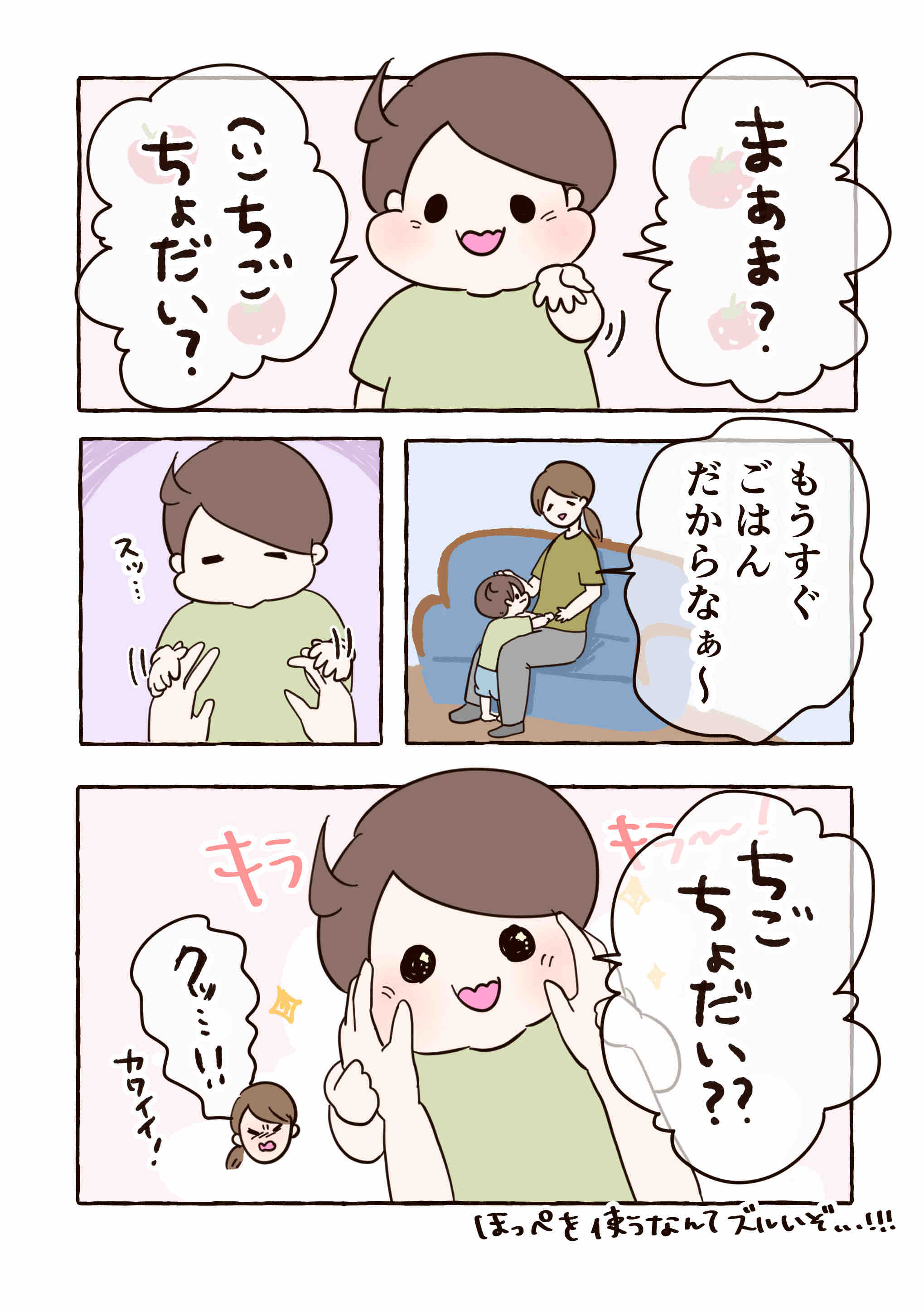 ほっぺを私の手のひらにぎゅー!って押しつけて「ちょだい?🥹❤️」とか、もうびっくりしたよ😂
