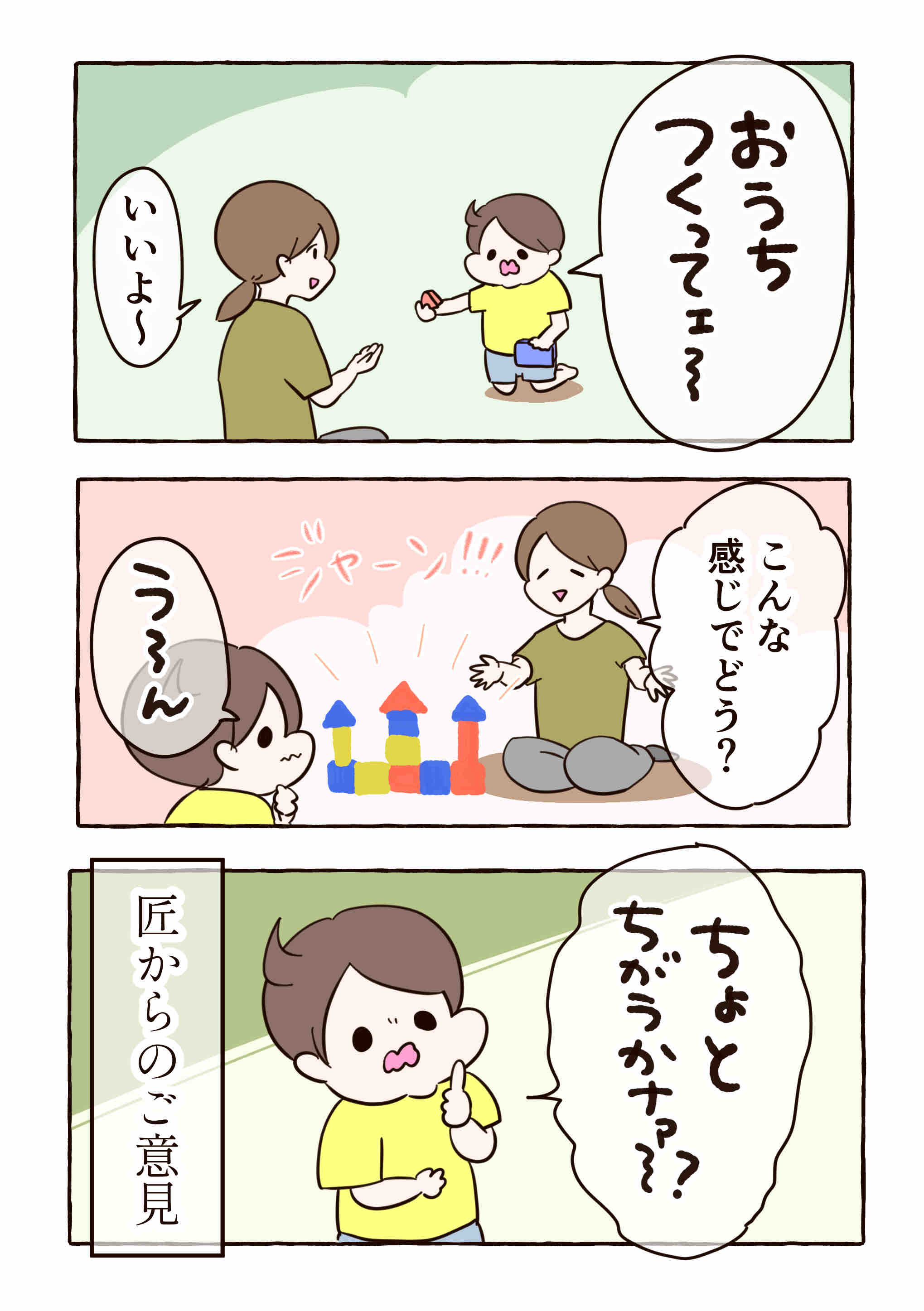 でも高く積み上げる派の夫が作るともれなく壊しにかかるので、私が作る方が理想の家に近いんだろうな(?)