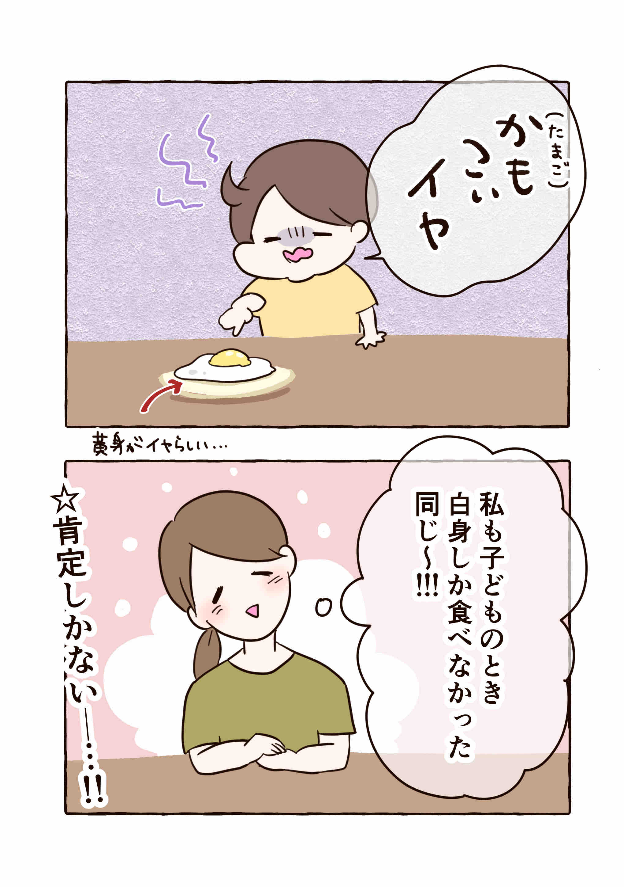 肉は噛み切るのが苦手なのか途中で大体出しちゃうの。