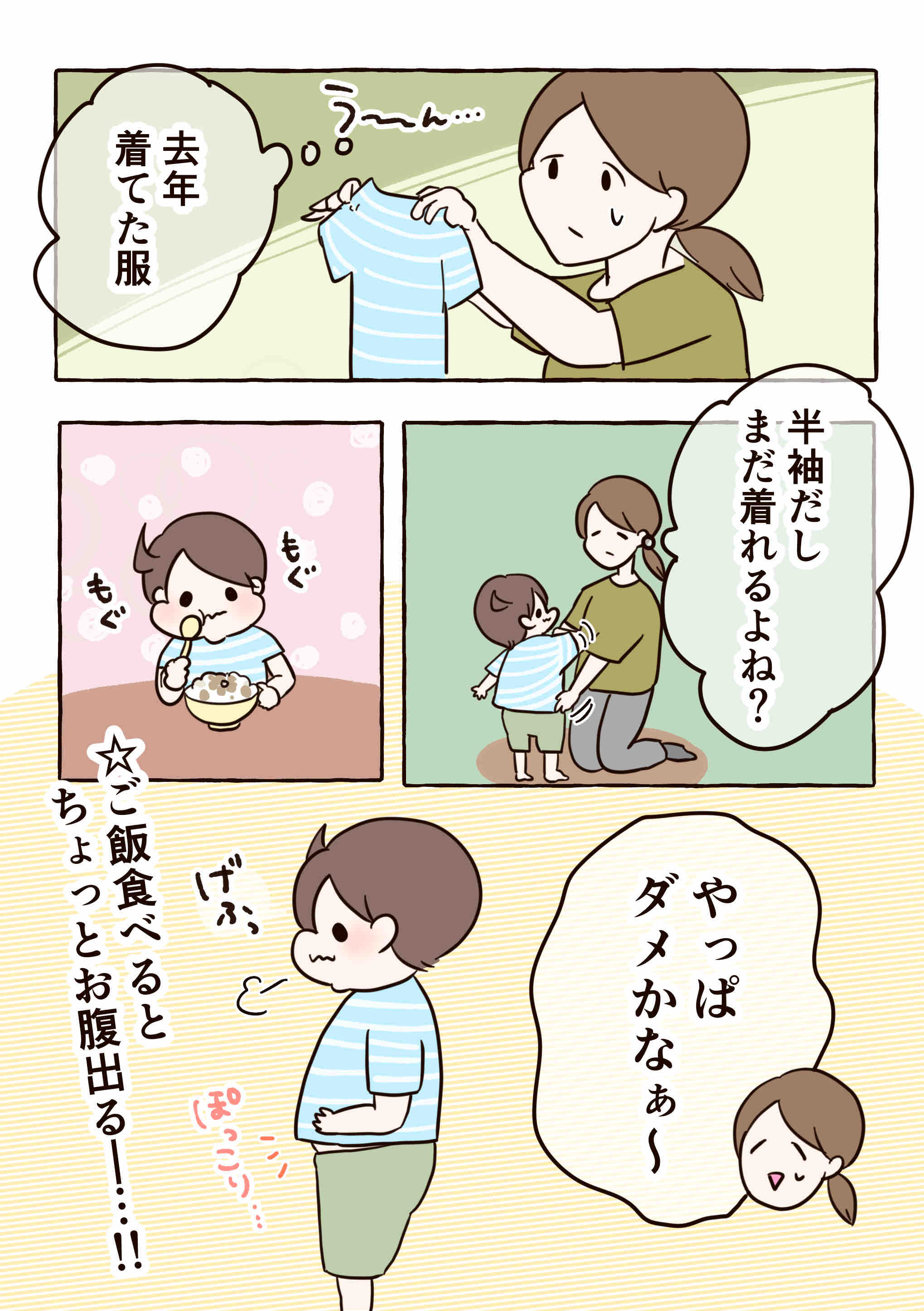 ちょっとゆったりとした80サイズ、まだいけるかなぁと思ってたけど、やっぱちょっと無理かなぁ。