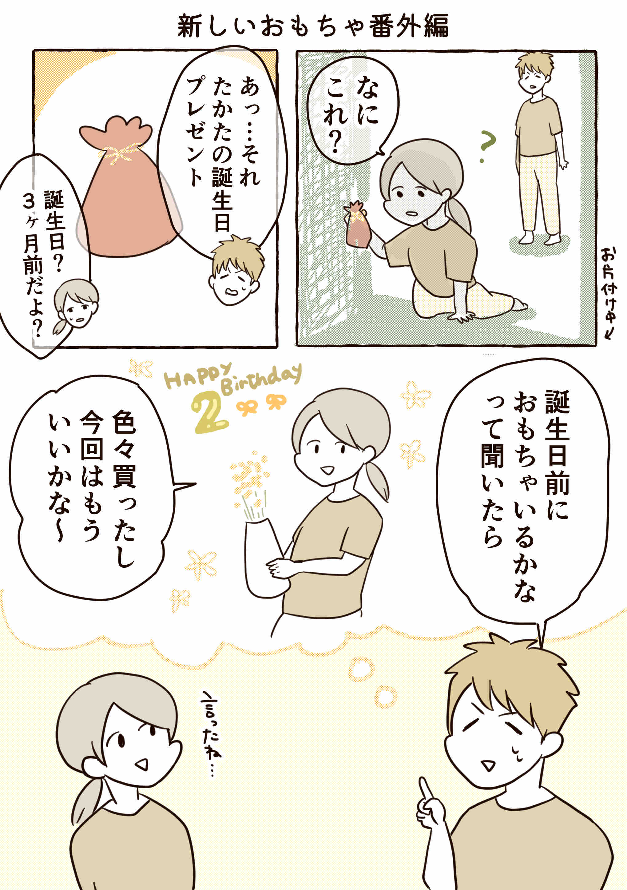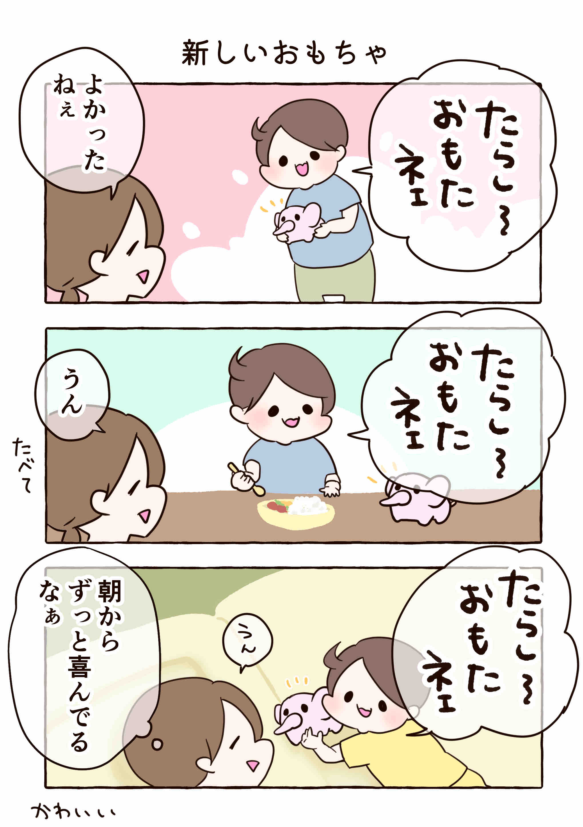 いつもはアンパンマンにしか興味を示してないけど、そのおもちゃはとっても気に入ったのかお布団にまで持ち込んで一緒に寝るようになった。