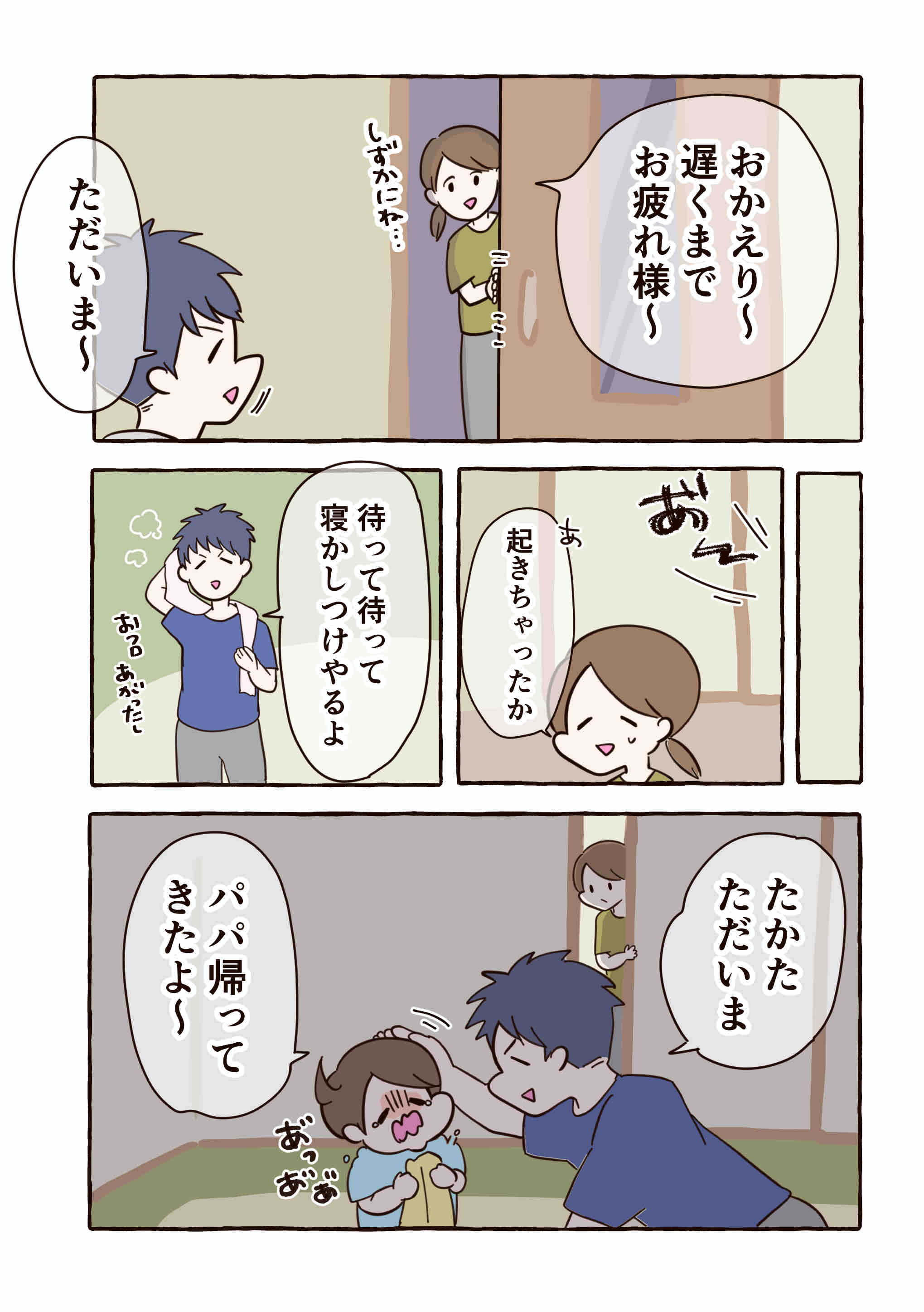 子どもが就寝するまでには、いつも夫は帰宅してるんですが、たまに日を跨ぐ位遅い日があります。