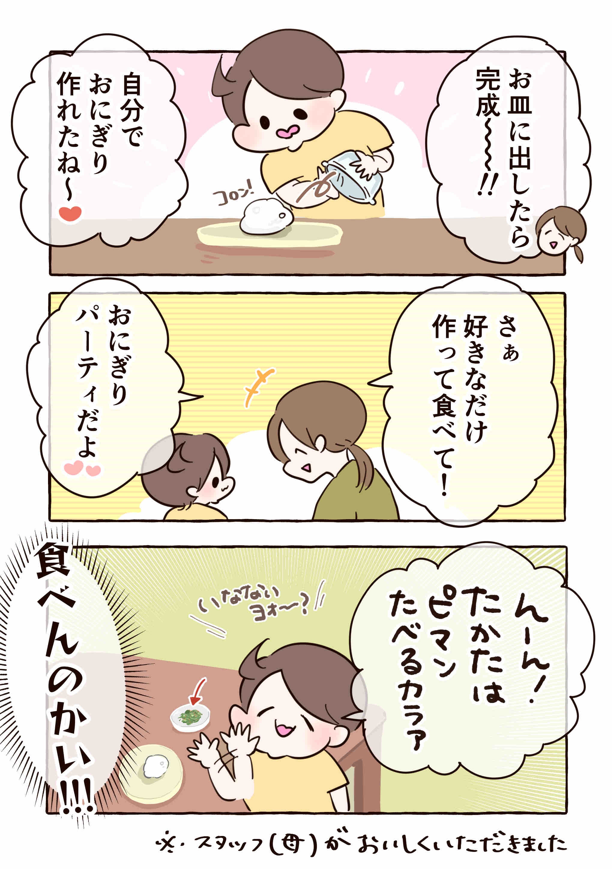 おにぎりはラップして、後でおやつに出したら食べたからトータルでは100点だね!ってことで🙆♀️