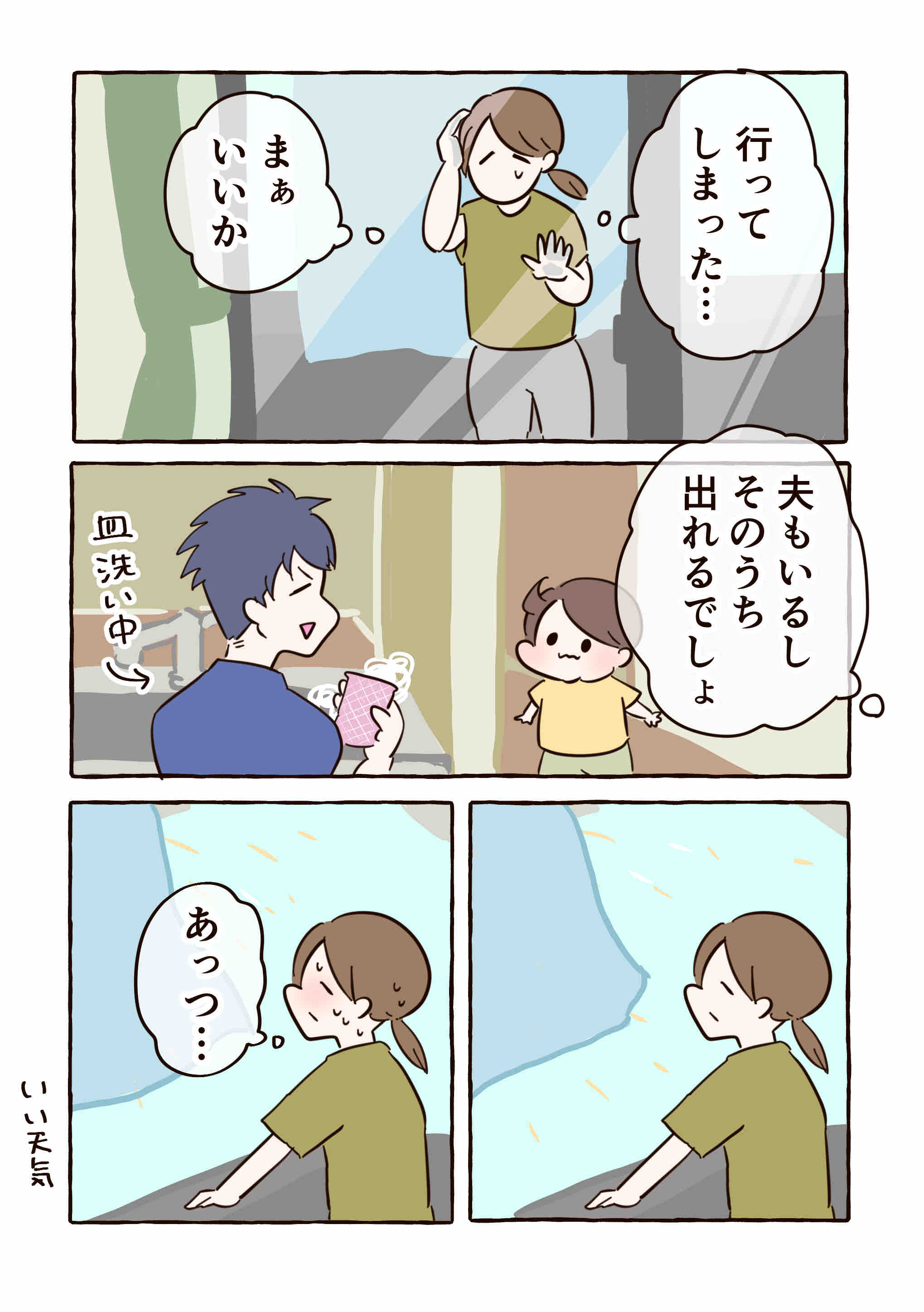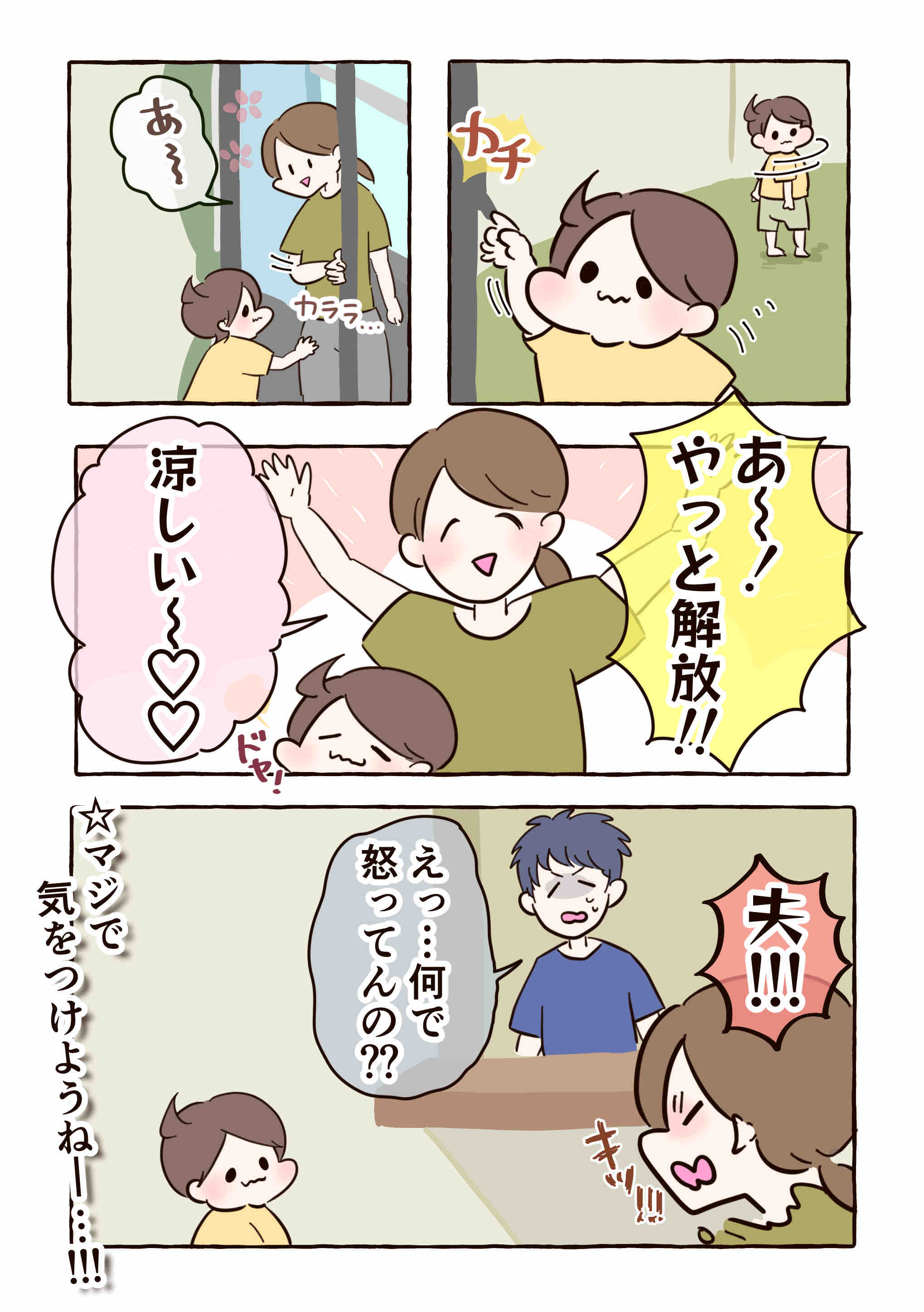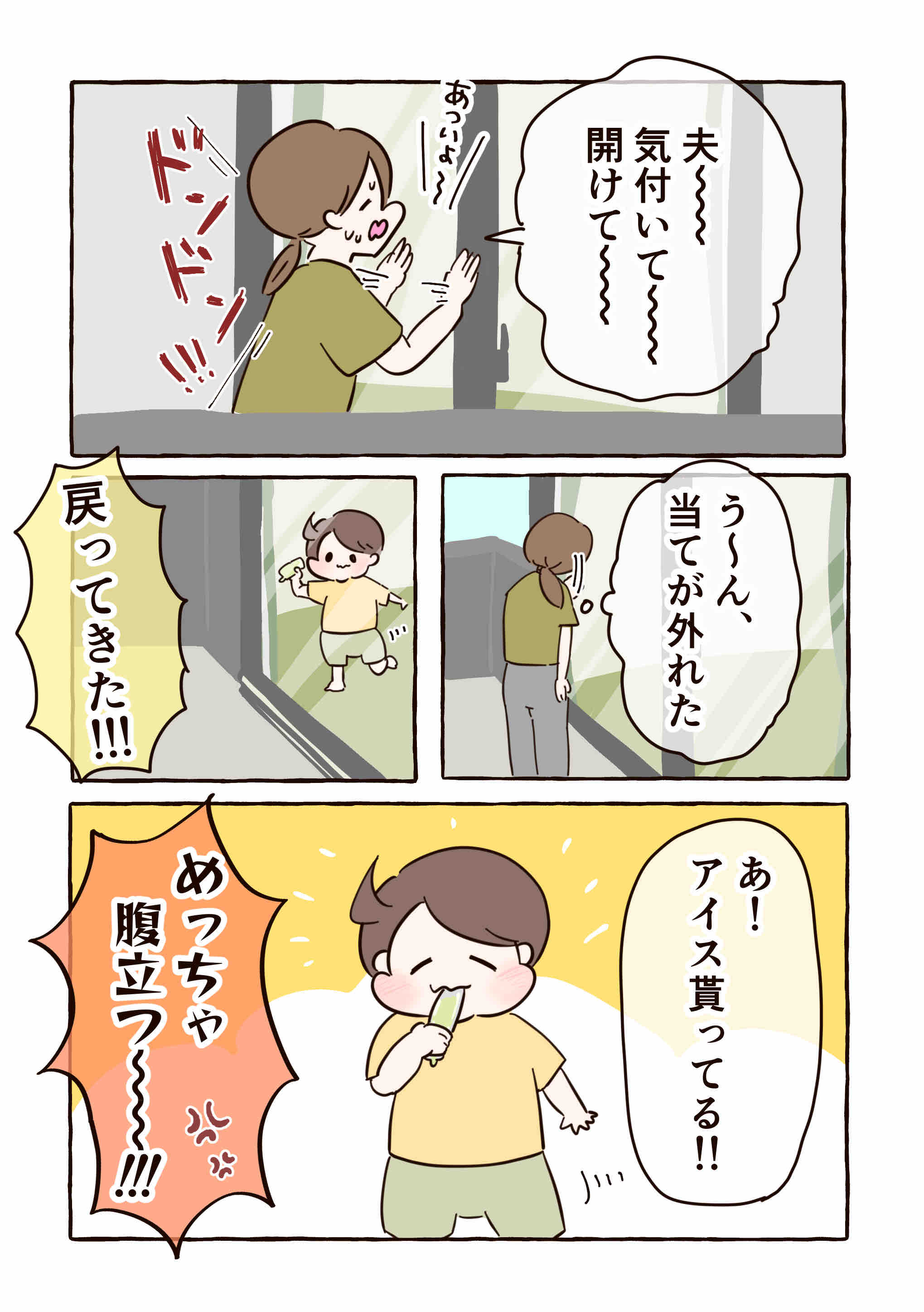 いつもはベランダに出る時、他の窓の鍵を開けておいたり、最初から子どもと一緒にベランダに出たりするけど今回は油断した……😞