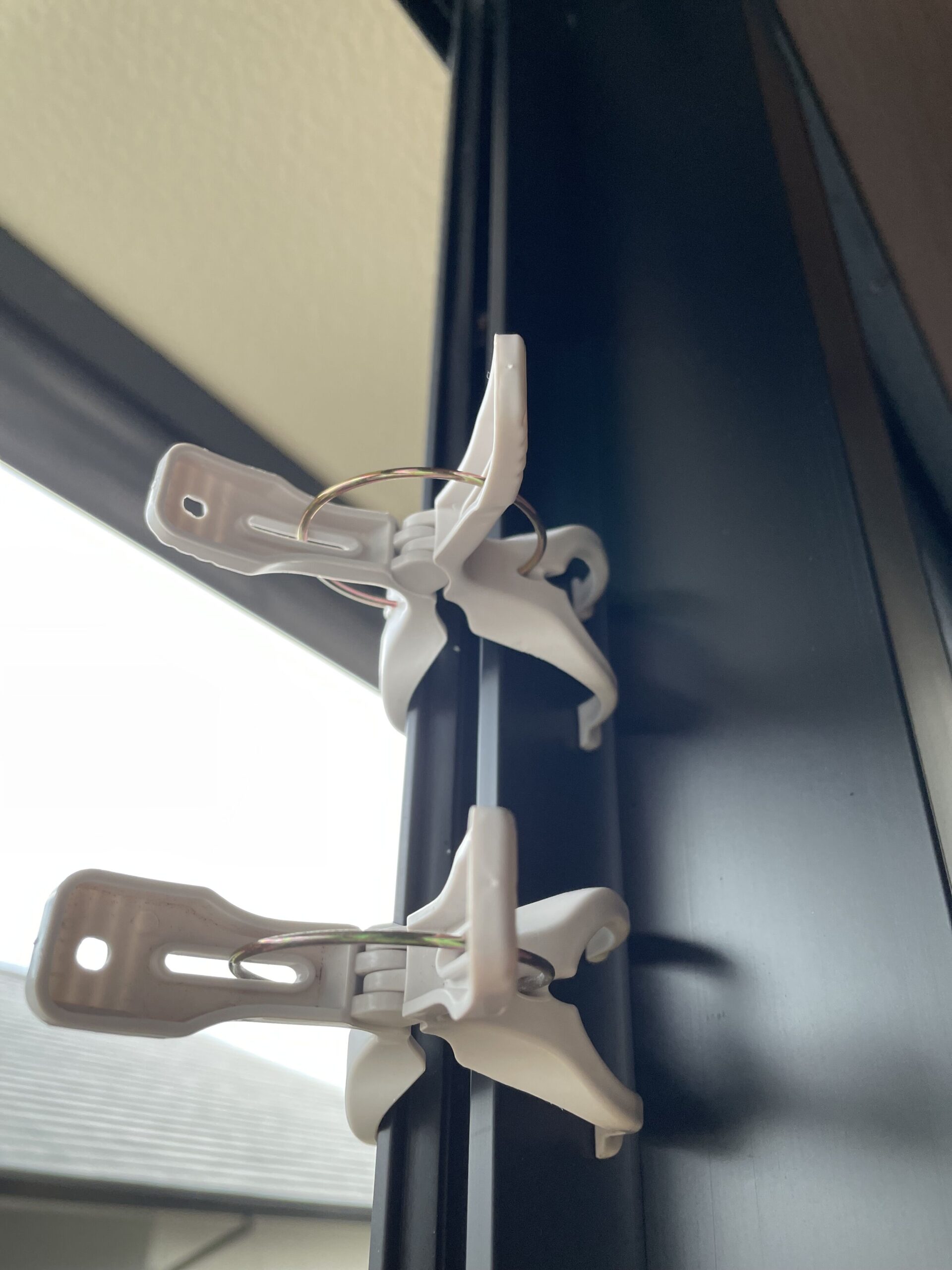 調べたら布団バサミを窓にはめておくと閉まらないらしい。