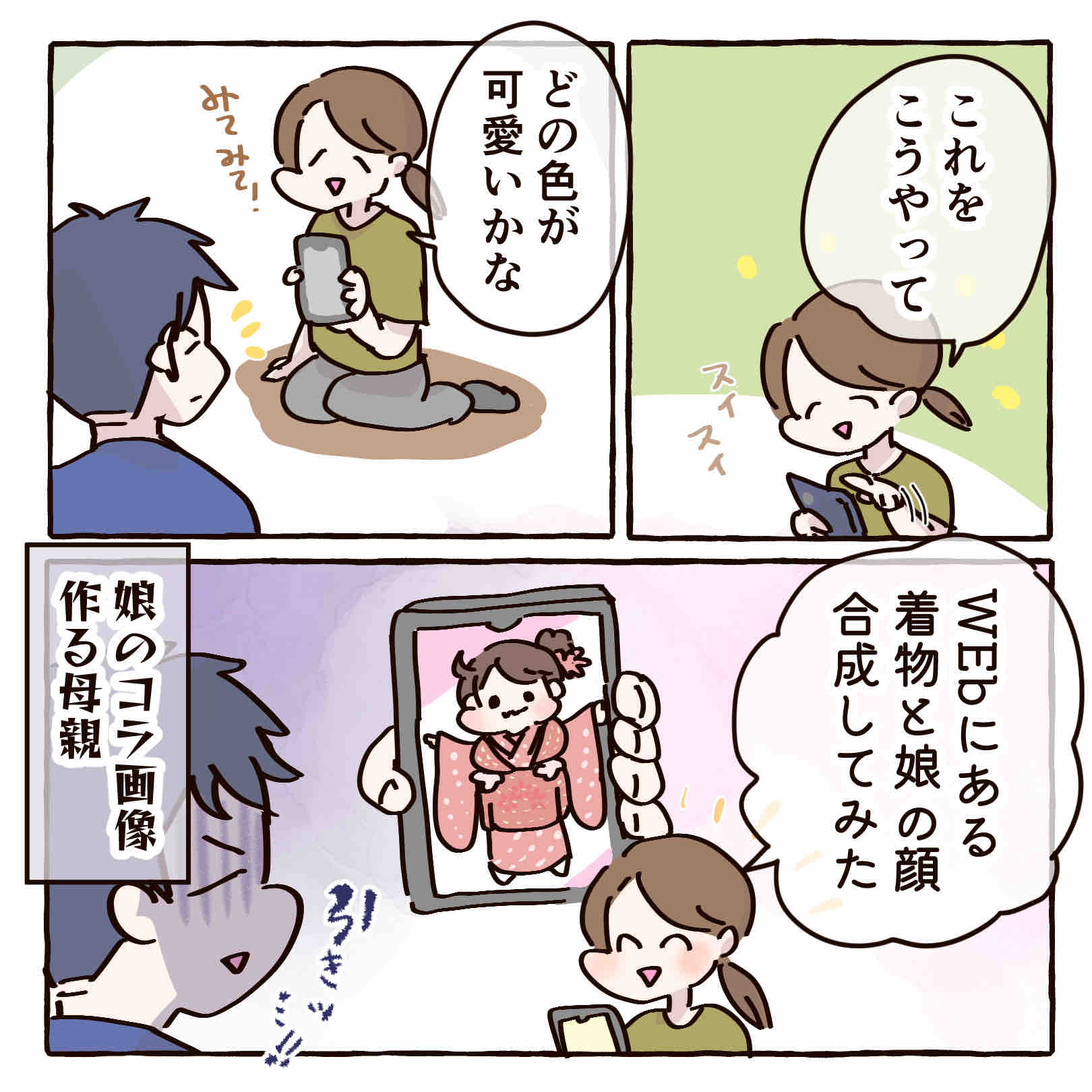 適当に娘の写真を当てて、こんな感じになりそうだよ〜って着用イメージ画像を作ったら夫がドン引いた顔してて。