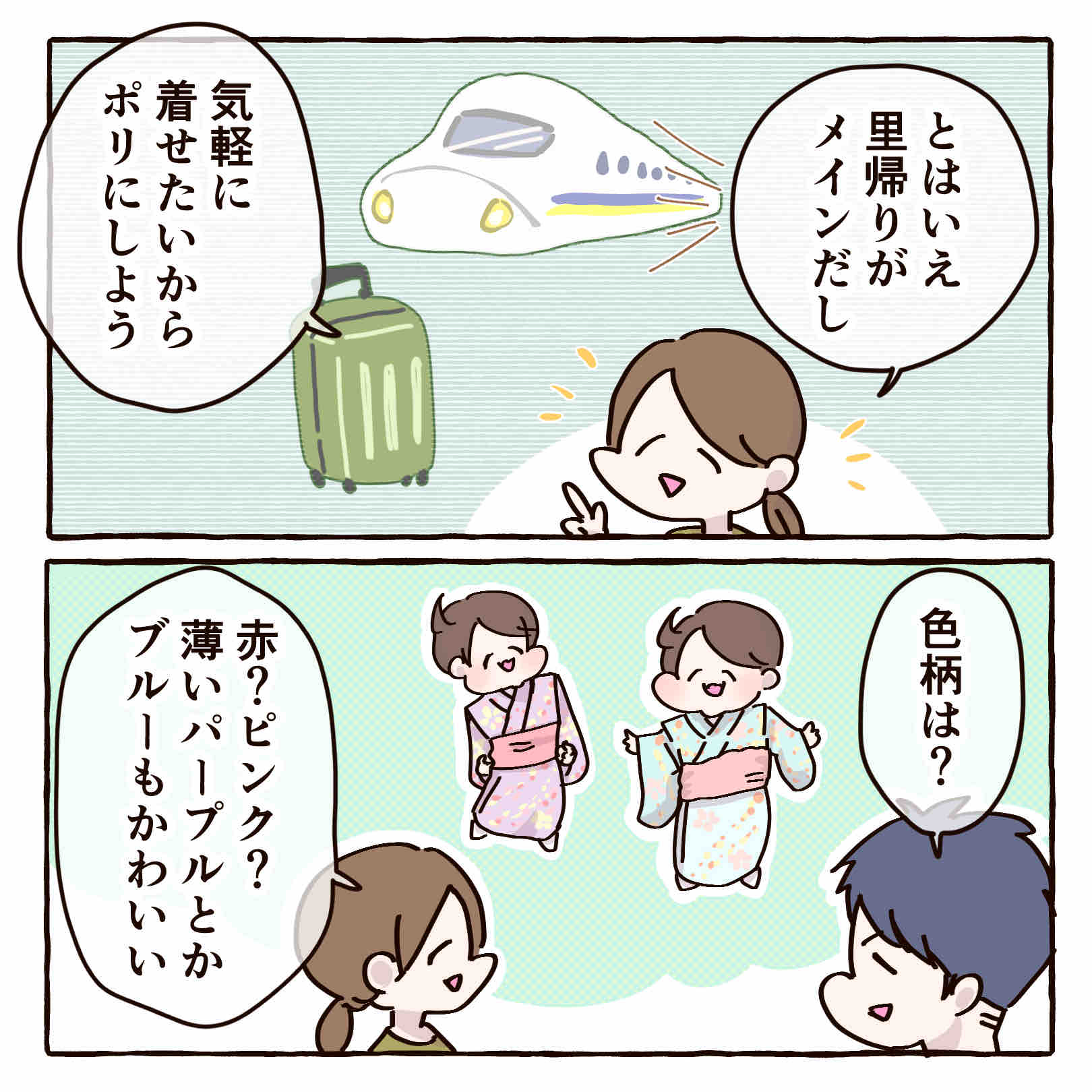 前回の帰省の話をした段階では、ちょっとよそ行きの洋服にしようよ〜って話していたのですが、