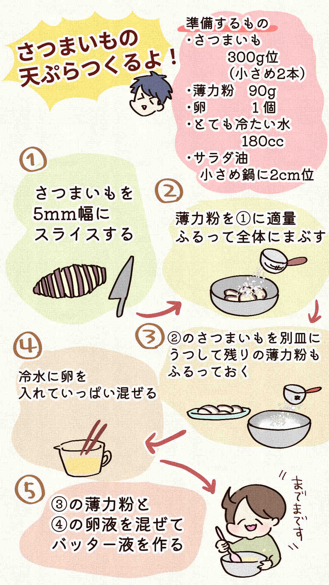 カリカリのほくほくの天ぷらになるのでさつまいものシーズンが終わる前に良かったら作ってみてくださいね🍠