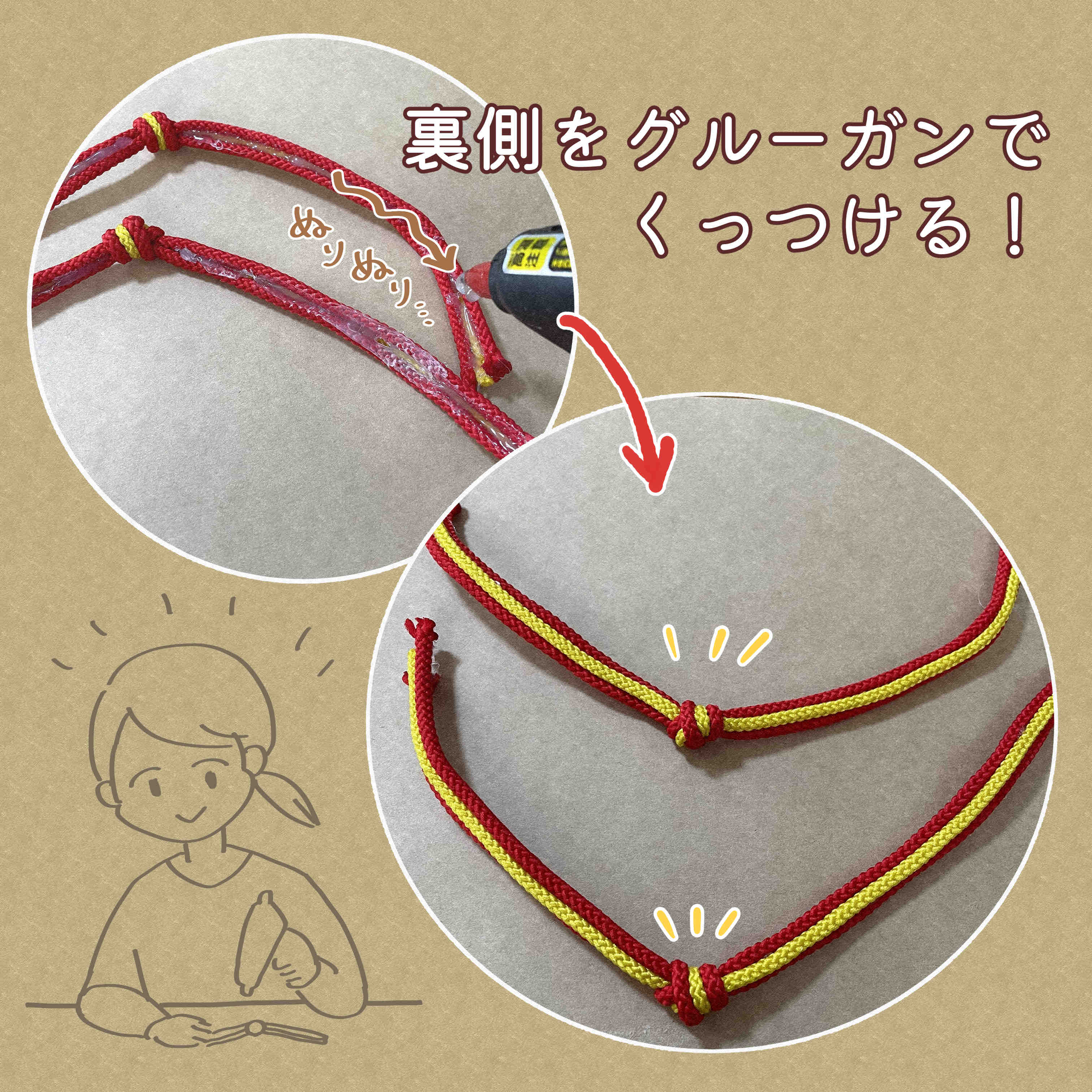 グルーガンは布に貼り付けると布に染み込んで取れにくくなってしまうので注意が必要です。
