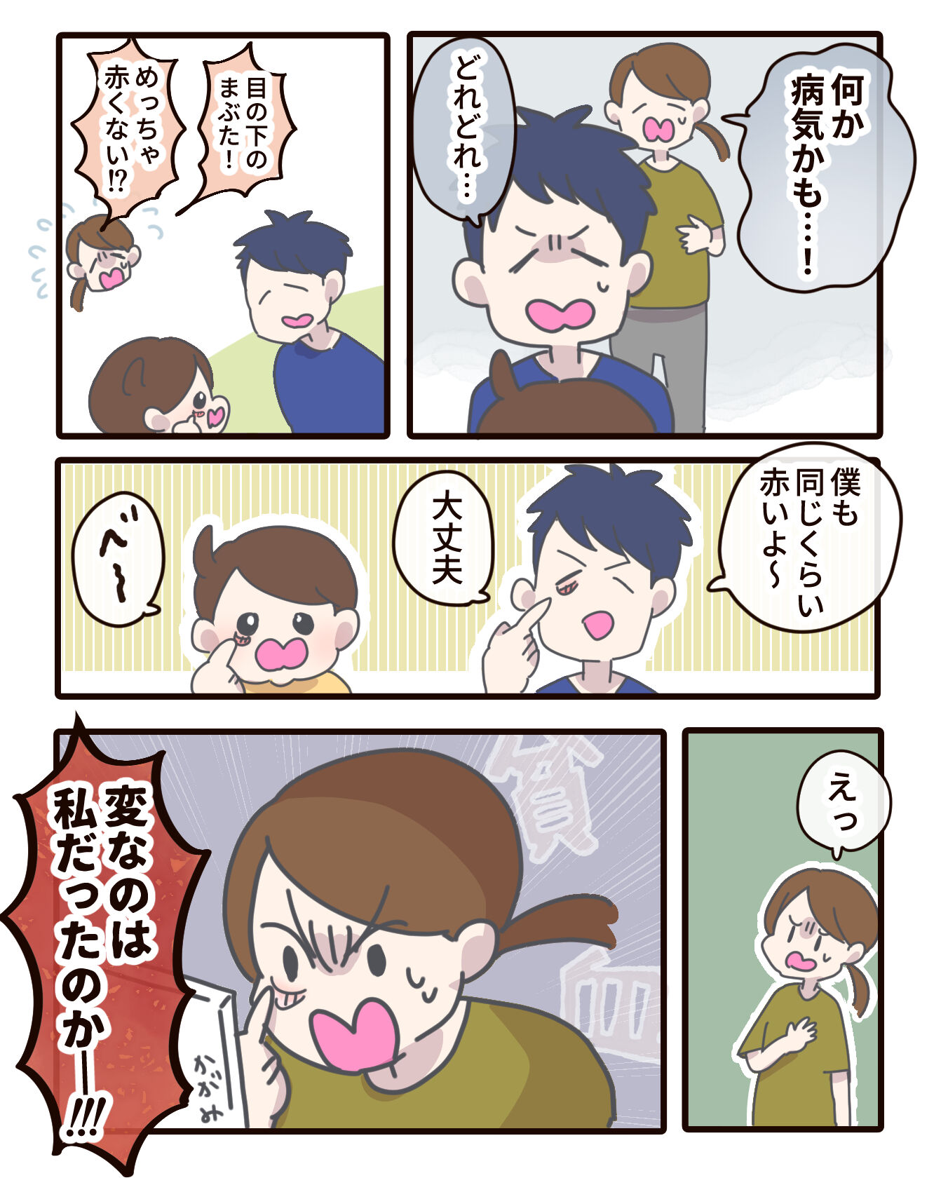 娘の下まぶたの目の赤さに