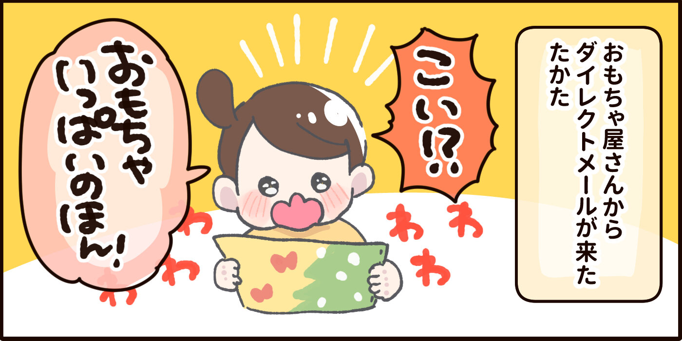 ちょうどDMがおもちゃ屋さんから届いていたので、たかたに見せて欲しいものを聞き出そうとしたんですが…