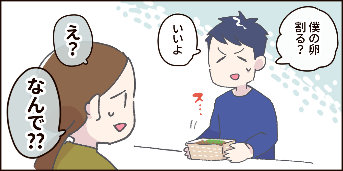 夫が『自分で卵を割れない』理由がかわいそう…