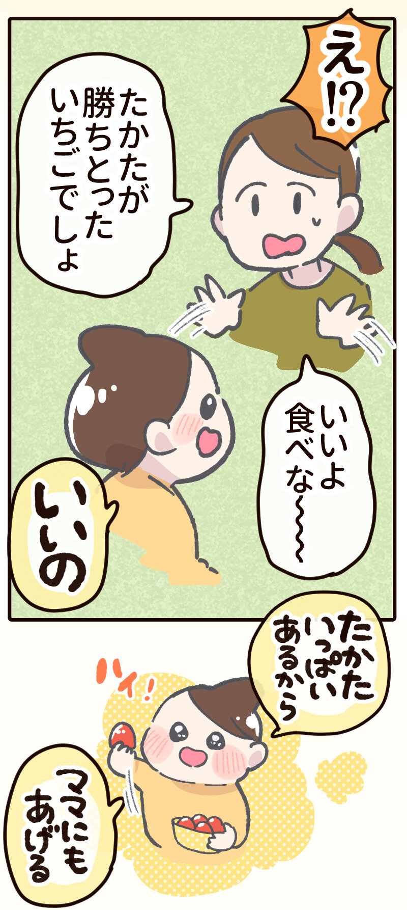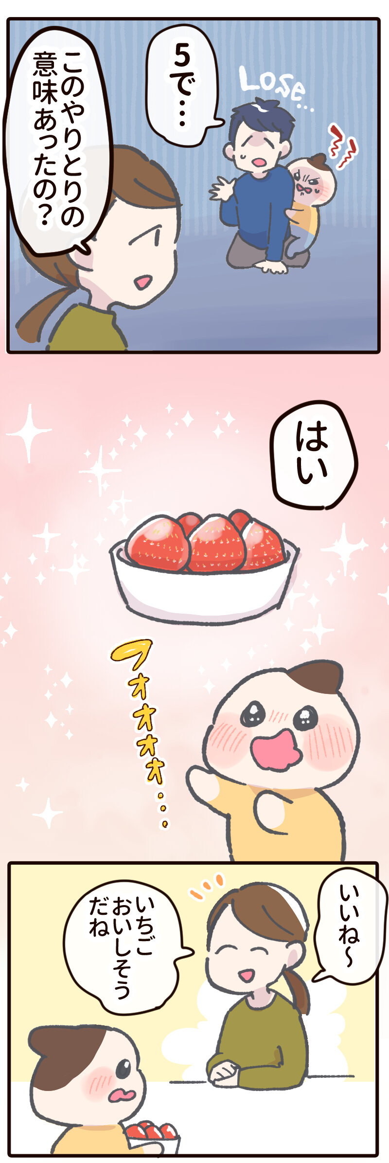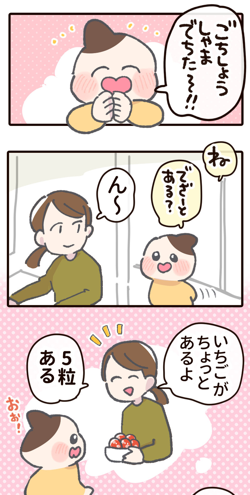 4歳、いちごが大好きなはずなのに… 2024.04.20 日常 4歳、いちごが大好きなはずなのに… 広告 あとがき さっきまで5個欲しかったのに 父母にも渡すの優しすぎて…😭 いちごを包んでいるセロファンさぁ… 4歳がケーキを選ぶ基準【4歳のお誕生日編⑤】 いちごのシーズンは最強だ!!! 返そうと思ったけど 食べて欲しいと言われたので ありがたくいただきました。 おいしかったよ〜! 0 コメントはこちら 同じカテゴリの記事 ワンテンポ遅い親の気付き おしっこもってくの!? パパのアドバイスを受け止める 連載一覧 寒さ対策 不審者にならないために 赤ちゃんがうなる理由 インフルエンザの予防接種に行ってきた! 5歳の娘の不思議な質問!?【ASOPPA!連載】 毎年恒例のおせちの選び方! 雨の日にお外に行ってはいけないよ 臓器なのにかわいい? 子どもの心臓の音を聞いて親が気づいた大切なこと【ASOPPA!連載】 ヤマトじゃない 夫が北海道に行くらしい 撮ってると思って身構えたのに……主役はまさかの“そっち側”だった【ASOPPA!連載】 初めてのたこ焼き作るよ!【後編】 初めてのたこ焼き作るよ!【前編】 9月になったので年末の準備をはじめる! 園で拾ったピンクの石を交換した娘……ほっこりする話かと思いきや、まさかの展開に母ダッシュ【ASOPPA!連載】 LINEスタンプ、配信開始しました! 自信満々な5さい 祭りの花火、音と煙で怖いかな?泣いちゃうかな……!?【ASOPPA!連載】 「乗ってもいいの?」遠慮する5歳を飛行機ポーズで飛ばしてみたら…【ASOPPA!連載】 おしゃれな本棚を作りたい! ママみて!が止まらない 大人がうんていにチャレンジしたら、肩からすごい音が…【ASOPPA!連載】 たかた、全集中〇〇の型 お菓子警察、もう騙されない ママって魔法使い!?ペットボトルを使った水あそびでサイエンスごっこ【ASOPPA!連載】 セルフまつパにチャレンジしてみた話 ランドセルの話をしてただけなのに……先生の声が少し変わった瞬間のこと【ASOPPA!連載】とお知らせ なんにでも才能を見出しちゃう親 ママのヒントがまさかの罠!?しりとり中に飛び出した言い間違いに思わずにっこり【ASOPPA!連載】 無意識に自分を下げてしまうことがある かわいいすぎてずるいって話と書籍PR 星がふえると、なんだかうれしい!七夕の“飛ばし絵”あそび【ASOPPA!連載】 5さい、指先の皮がボロボロ… からあげってどんな味がする!? 君が生まれたばかりの世界は……5歳の誕生日に感じた子どもの成長【ASOPPA!連載】 わずかなヒントから答えを探し出せ! カレーうどんってどんな味?5歳の素直な感想にパパ思わず感心【ASOPPA!連載】 ダメージ加工ってさ… 「1たす1は11?」5歳児のピュアな計算ミスに母、胸キュン【ASOPPA!連載】 記念すべき?歯が抜けた話【後編】 記念すべき?歯が抜けた話【中編】 記念すべき?歯が抜けた話【前編】 各方面への配慮 懐かしくて、ちょっとしょっぱい。大人になって気づいた、駄菓子とのちょうどいい距離感【ASOPPA!連載】 緊張しいのたかた【後編】七五三の前撮り 緊張しいのたかた【前編】七五三の前撮り ここまでくるのに5年かかりました 生放送でお名前を呼ばれたい 泥団子を極めしもの ピーピー豆とおままごと 「パパだけ保育園に行くね」と言ったら、娘の返答がまさかの本気モードで笑っちゃう!【ASOPPA!連載】 見せたい自信作 ねぇ、あれってなんだっけ? ドレスを選ぶ基準【後編】七五三の前撮り ドレスを選ぶ基準【前編】七五三の前撮り 泣くのって悪いこと?【後編】 泣くのって悪いこと?【前編】 ありがとうじゃなくて……!?5歳にお礼を促した結果に笑っちゃう【ASOPPA!連載】 もう七五三するの!?【後編】 もう七五三するの!?【前編】 パパのおしり拭き おいしいお薬を食べてみた 君が赤ちゃんのときの話 一体何を見つけたの〜!?子どもと過ごす春は発見とハプニングの連続だ!【ASOPPA!連載】 ゆふいんの森号に乗りたい親子 2025春のパン祭り経過 冷蔵庫にゼリーがあるぞ! 「せ」の音はどこ?ピアノで遊ぶ4歳の純粋な疑問にパパ困惑 【ASOPPA!連載】 アマゾンってなに? タブレットに不正アクセスされた話 そろそろ「たかた」を卒業させたい 「まごわやさしい」の「い」はまさかの……!?4歳の自由すぎる発想に思わず笑顔に【ASOPPA!連載】 名前の練習ってどうする?我が家のゆるっと入園準備 【ASOPPA!連載】 ついにこの時がやってきた オンラインフィットネス「サーティフィット」で理想の体を目指す話④ ご報告 私もかわいいの!赤ちゃん時代の写真を見た4歳児の反応にほっこり【ASOPPA!連載】 今年もパン祭りがはじまった お散歩が楽しみすぎる4歳!着替えながらお片付け……できちゃうの!?【ASOPPA!連載】 4歳、歯科がこわい ほぼ売れ切れのご飯屋さんの正体 いつものおやつを特別にする?とびきりの裏技 かわいい4歳の指を借りて……バレンタインのかわいいお菓子を一緒に手作り【ASOPPA!連載】 オンラインフィットネス「サーティフィット」で理想の体を目指す話③ 断られても気にしないメンタル 疲れた母をどうにかする4才 手に余っ