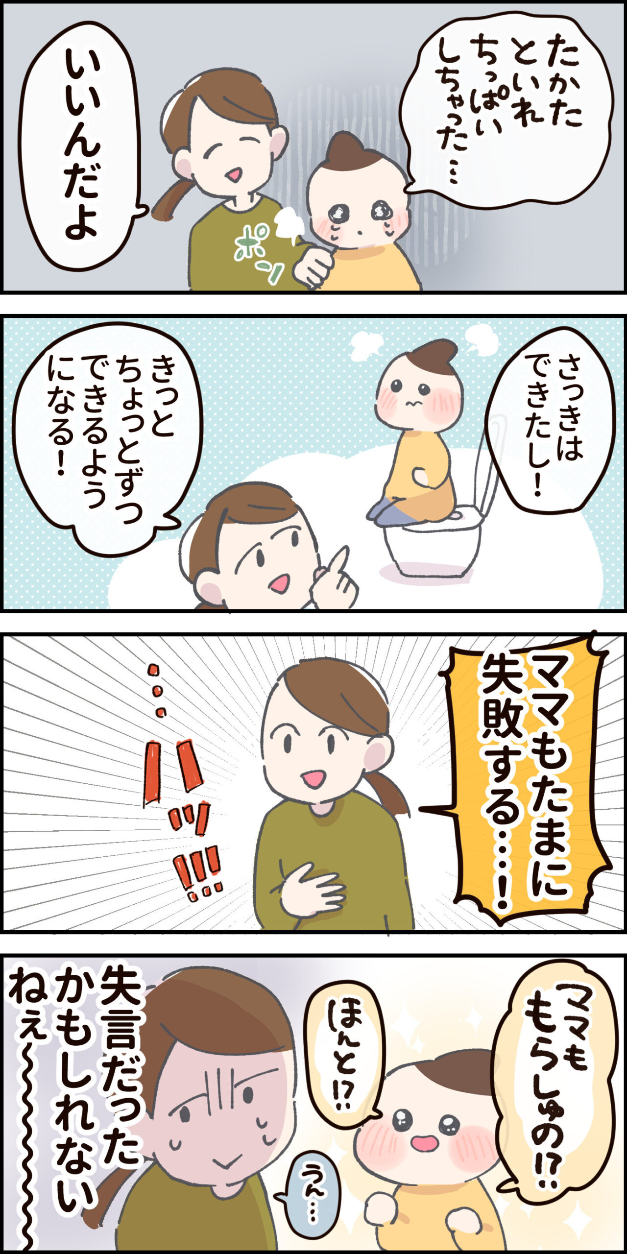 失敗談は慎重に 2024.04.27 日常 失敗談は慎重に あとがき ま〜た保育園で 歴史を作ってしまうな〜… 禁断の質問への回答例が知りたい 先生!違うんです!!! トイトレって結局本人のやる気次第なんだなって脱力した話【前編】 0 コメントはこちら 同じカテゴリの記事 ワンテンポ遅い親の気付き おしっこもってくの!? パパのアドバイスを受け止める 連載一覧 寒さ対策 不審者にならないために 赤ちゃんがうなる理由 インフルエンザの予防接種に行ってきた! 5歳の娘の不思議な質問!?【ASOPPA!連載】 毎年恒例のおせちの選び方! 雨の日にお外に行ってはいけないよ 臓器なのにかわいい? 子どもの心臓の音を聞いて親が気づいた大切なこと【ASOPPA!連載】 ヤマトじゃない 夫が北海道に行くらしい 撮ってると思って身構えたのに……主役はまさかの“そっち側”だった【ASOPPA!連載】 初めてのたこ焼き作るよ!【後編】 初めてのたこ焼き作るよ!【前編】 9月になったので年末の準備をはじめる! 園で拾ったピンクの石を交換した娘……ほっこりする話かと思いきや、まさかの展開に母ダッシュ【ASOPPA!連載】 LINEスタンプ、配信開始しました! 自信満々な5さい 祭りの花火、音と煙で怖いかな?泣いちゃうかな……!?【ASOPPA!連載】 「乗ってもいいの?」遠慮する5歳を飛行機ポーズで飛ばしてみたら…【ASOPPA!連載】 おしゃれな本棚を作りたい! ママみて!が止まらない 大人がうんていにチャレンジしたら、肩からすごい音が…【ASOPPA!連載】 たかた、全集中〇〇の型 お菓子警察、もう騙されない ママって魔法使い!?ペットボトルを使った水あそびでサイエンスごっこ【ASOPPA!連載】 セルフまつパにチャレンジしてみた話 ランドセルの話をしてただけなのに……先生の声が少し変わった瞬間のこと【ASOPPA!連載】とお知らせ なんにでも才能を見出しちゃう親 ママのヒントがまさかの罠!?しりとり中に飛び出した言い間違いに思わずにっこり【ASOPPA!連載】 無意識に自分を下げてしまうことがある かわいいすぎてずるいって話と書籍PR 星がふえると、なんだかうれしい!七夕の“飛ばし絵”あそび【ASOPPA!連載】 5さい、指先の皮がボロボロ… からあげってどんな味がする!? 君が生まれたばかりの世界は……5歳の誕生日に感じた子どもの成長【ASOPPA!連載】 わずかなヒントから答えを探し出せ! カレーうどんってどんな味?5歳の素直な感想にパパ思わず感心【ASOPPA!連載】 ダメージ加工ってさ… 「1たす1は11?」5歳児のピュアな計算ミスに母、胸キュン【ASOPPA!連載】 記念すべき?歯が抜けた話【後編】 記念すべき?歯が抜けた話【中編】 記念すべき?歯が抜けた話【前編】 各方面への配慮 懐かしくて、ちょっとしょっぱい。大人になって気づいた、駄菓子とのちょうどいい距離感【ASOPPA!連載】 緊張しいのたかた【後編】七五三の前撮り 緊張しいのたかた【前編】七五三の前撮り ここまでくるのに5年かかりました 生放送でお名前を呼ばれたい 泥団子を極めしもの ピーピー豆とおままごと 「パパだけ保育園に行くね」と言ったら、娘の返答がまさかの本気モードで笑っちゃう!【ASOPPA!連載】 見せたい自信作 ねぇ、あれってなんだっけ? ドレスを選ぶ基準【後編】七五三の前撮り ドレスを選ぶ基準【前編】七五三の前撮り 泣くのって悪いこと?【後編】 泣くのって悪いこと?【前編】 ありがとうじゃなくて……!?5歳にお礼を促した結果に笑っちゃう【ASOPPA!連載】 もう七五三するの!?【後編】 もう七五三するの!?【前編】 パパのおしり拭き おいしいお薬を食べてみた 君が赤ちゃんのときの話 一体何を見つけたの〜!?子どもと過ごす春は発見とハプニングの連続だ!【ASOPPA!連載】 ゆふいんの森号に乗りたい親子 2025春のパン祭り経過 冷蔵庫にゼリーがあるぞ! 「せ」の音はどこ?ピアノで遊ぶ4歳の純粋な疑問にパパ困惑 【ASOPPA!連載】 アマゾンってなに? タブレットに不正アクセスされた話 そろそろ「たかた」を卒業させたい 「まごわやさしい」の「い」はまさかの……!?4歳の自由すぎる発想に思わず笑顔に【ASOPPA!連載】 名前の練習ってどうする?我が家のゆるっと入園準備 【ASOPPA!連載】 ついにこの時がやってきた オンラインフィットネス「サーティフィット」で理想の体を目指す話④ ご報告 私もかわいいの!赤ちゃん時代の写真を見た4歳児の反応にほっこり【ASOPPA!連載】 今年もパン祭りがはじまった お散歩が楽しみすぎる4歳!着替えながらお片付け……できちゃうの!?【ASOPPA!連載】 4歳、歯科がこわい ほぼ売れ切れのご飯屋さんの正体 いつものおやつを特別にする?とびきりの裏技 かわいい4歳の指を借りて……バレンタインのかわいいお菓子を一緒に手作り【ASOPPA!連載】 オンラインフィットネス「サーティフィット」で理想の体を目指す話③ 断られても気にしないメンタル 疲れた母をどうにかする4才 手に余ったクリームを… 体調が悪くなると変な想像するよね? 2025年節分 我が家にあらわれたオニ(4歳) パパ、だいすきだからここをあけてよ パパなんてしらないッ! え