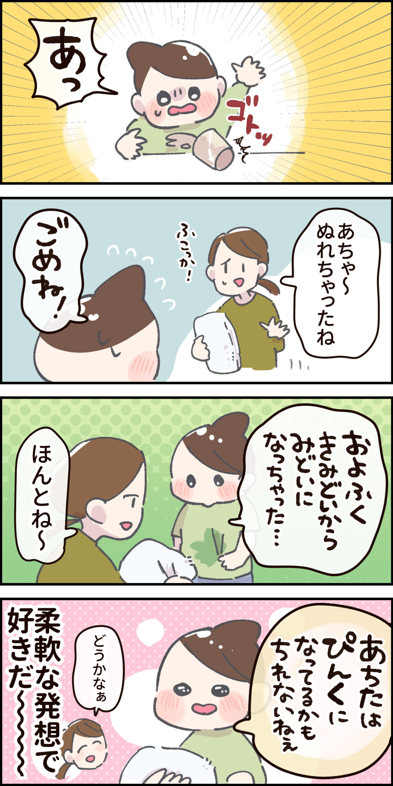 お茶をこぼしたら気づいちゃった 2024.04.29 日常 お茶をこぼしたら気づいちゃった あとがき そうだったらいいのにねぇ 好きな服着ようね 3歳、玉ねぎを食べた結果… 『お疲れ様』はどなたさま? 最近はピンクが好きらしいので、 ピンクになったら嬉しいのかな? 大人が思いつかないようなことを 言ってくるの楽しいしかわいい! 0 コメントはこちら 同じカテゴリの記事 ワンテンポ遅い親の気付き おしっこもってくの!? パパのアドバイスを受け止める 連載一覧 寒さ対策 不審者にならないために 赤ちゃんがうなる理由 インフルエンザの予防接種に行ってきた! 5歳の娘の不思議な質問!?【ASOPPA!連載】 毎年恒例のおせちの選び方! 雨の日にお外に行ってはいけないよ 臓器なのにかわいい? 子どもの心臓の音を聞いて親が気づいた大切なこと【ASOPPA!連載】 ヤマトじゃない 夫が北海道に行くらしい 撮ってると思って身構えたのに……主役はまさかの“そっち側”だった【ASOPPA!連載】 初めてのたこ焼き作るよ!【後編】 初めてのたこ焼き作るよ!【前編】 9月になったので年末の準備をはじめる! 園で拾ったピンクの石を交換した娘……ほっこりする話かと思いきや、まさかの展開に母ダッシュ【ASOPPA!連載】 LINEスタンプ、配信開始しました! 自信満々な5さい 祭りの花火、音と煙で怖いかな?泣いちゃうかな……!?【ASOPPA!連載】 「乗ってもいいの?」遠慮する5歳を飛行機ポーズで飛ばしてみたら…【ASOPPA!連載】 おしゃれな本棚を作りたい! ママみて!が止まらない 大人がうんていにチャレンジしたら、肩からすごい音が…【ASOPPA!連載】 たかた、全集中〇〇の型 お菓子警察、もう騙されない ママって魔法使い!?ペットボトルを使った水あそびでサイエンスごっこ【ASOPPA!連載】 セルフまつパにチャレンジしてみた話 ランドセルの話をしてただけなのに……先生の声が少し変わった瞬間のこと【ASOPPA!連載】とお知らせ なんにでも才能を見出しちゃう親 ママのヒントがまさかの罠!?しりとり中に飛び出した言い間違いに思わずにっこり【ASOPPA!連載】 無意識に自分を下げてしまうことがある かわいいすぎてずるいって話と書籍PR 星がふえると、なんだかうれしい!七夕の“飛ばし絵”あそび【ASOPPA!連載】 5さい、指先の皮がボロボロ… からあげってどんな味がする!? 君が生まれたばかりの世界は……5歳の誕生日に感じた子どもの成長【ASOPPA!連載】 わずかなヒントから答えを探し出せ! カレーうどんってどんな味?5歳の素直な感想にパパ思わず感心【ASOPPA!連載】 ダメージ加工ってさ… 「1たす1は11?」5歳児のピュアな計算ミスに母、胸キュン【ASOPPA!連載】 記念すべき?歯が抜けた話【後編】 記念すべき?歯が抜けた話【中編】 記念すべき?歯が抜けた話【前編】 各方面への配慮 懐かしくて、ちょっとしょっぱい。大人になって気づいた、駄菓子とのちょうどいい距離感【ASOPPA!連載】 緊張しいのたかた【後編】七五三の前撮り 緊張しいのたかた【前編】七五三の前撮り ここまでくるのに5年かかりました 生放送でお名前を呼ばれたい 泥団子を極めしもの ピーピー豆とおままごと 「パパだけ保育園に行くね」と言ったら、娘の返答がまさかの本気モードで笑っちゃう!【ASOPPA!連載】 見せたい自信作 ねぇ、あれってなんだっけ? ドレスを選ぶ基準【後編】七五三の前撮り ドレスを選ぶ基準【前編】七五三の前撮り 泣くのって悪いこと?【後編】 泣くのって悪いこと?【前編】 ありがとうじゃなくて……!?5歳にお礼を促した結果に笑っちゃう【ASOPPA!連載】 もう七五三するの!?【後編】 もう七五三するの!?【前編】 パパのおしり拭き おいしいお薬を食べてみた 君が赤ちゃんのときの話 一体何を見つけたの〜!?子どもと過ごす春は発見とハプニングの連続だ!【ASOPPA!連載】 ゆふいんの森号に乗りたい親子 2025春のパン祭り経過 冷蔵庫にゼリーがあるぞ! 「せ」の音はどこ?ピアノで遊ぶ4歳の純粋な疑問にパパ困惑 【ASOPPA!連載】 アマゾンってなに? タブレットに不正アクセスされた話 そろそろ「たかた」を卒業させたい 「まごわやさしい」の「い」はまさかの……!?4歳の自由すぎる発想に思わず笑顔に【ASOPPA!連載】 名前の練習ってどうする?我が家のゆるっと入園準備 【ASOPPA!連載】 ついにこの時がやってきた オンラインフィットネス「サーティフィット」で理想の体を目指す話④ ご報告 私もかわいいの!赤ちゃん時代の写真を見た4歳児の反応にほっこり【ASOPPA!連載】 今年もパン祭りがはじまった お散歩が楽しみすぎる4歳!着替えながらお片付け……できちゃうの!?【ASOPPA!連載】 4歳、歯科がこわい ほぼ売れ切れのご飯屋さんの正体 いつものおやつを特別にする?とびきりの裏技 かわいい4歳の指を借りて……バレンタインのかわいいお菓子を一緒に手作り【ASOPPA!連載】 オンラインフィットネス「サーティフィット」で理想の体を目指す話③ 断られても気にしないメンタル 疲れた母をどうにかする4才 手に余ったクリームを… 体調が悪くなると変な想像するよね? 2