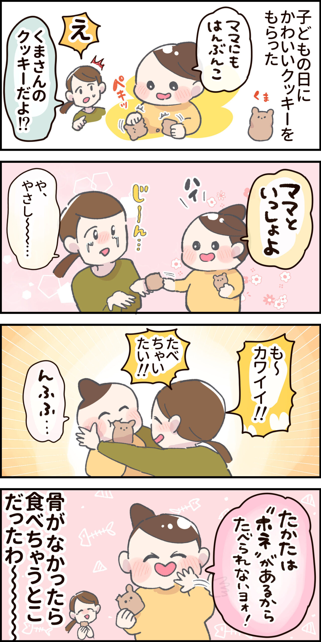 4歳には骨がある 2024.05.14 日常 4歳には骨がある あとがき 骨があってよかった〜! 食べちゃうとこだった!!! 4歳、母を笑顔にしたい 「うちの子天才!」を毎日繰り返す親の心情について 4歳がケーキを選ぶ基準【4歳のお誕生日編⑤】 優しさが身に染みるよぉ 普段マンガには書いてないけど 本当はイヤイヤもすごい… だからこういう瞬間が愛しい! 0 コメントはこちら 同じカテゴリの記事 ワンテンポ遅い親の気付き おしっこもってくの!? パパのアドバイスを受け止める 連載一覧 寒さ対策 不審者にならないために 赤ちゃんがうなる理由 インフルエンザの予防接種に行ってきた! 5歳の娘の不思議な質問!?【ASOPPA!連載】 毎年恒例のおせちの選び方! 雨の日にお外に行ってはいけないよ 臓器なのにかわいい? 子どもの心臓の音を聞いて親が気づいた大切なこと【ASOPPA!連載】 ヤマトじゃない 夫が北海道に行くらしい 撮ってると思って身構えたのに……主役はまさかの“そっち側”だった【ASOPPA!連載】 初めてのたこ焼き作るよ!【後編】 初めてのたこ焼き作るよ!【前編】 9月になったので年末の準備をはじめる! 園で拾ったピンクの石を交換した娘……ほっこりする話かと思いきや、まさかの展開に母ダッシュ【ASOPPA!連載】 LINEスタンプ、配信開始しました! 自信満々な5さい 祭りの花火、音と煙で怖いかな?泣いちゃうかな……!?【ASOPPA!連載】 「乗ってもいいの?」遠慮する5歳を飛行機ポーズで飛ばしてみたら…【ASOPPA!連載】 おしゃれな本棚を作りたい! ママみて!が止まらない 大人がうんていにチャレンジしたら、肩からすごい音が…【ASOPPA!連載】 たかた、全集中〇〇の型 お菓子警察、もう騙されない ママって魔法使い!?ペットボトルを使った水あそびでサイエンスごっこ【ASOPPA!連載】 セルフまつパにチャレンジしてみた話 ランドセルの話をしてただけなのに……先生の声が少し変わった瞬間のこと【ASOPPA!連載】とお知らせ なんにでも才能を見出しちゃう親 ママのヒントがまさかの罠!?しりとり中に飛び出した言い間違いに思わずにっこり【ASOPPA!連載】 無意識に自分を下げてしまうことがある かわいいすぎてずるいって話と書籍PR 星がふえると、なんだかうれしい!七夕の“飛ばし絵”あそび【ASOPPA!連載】 5さい、指先の皮がボロボロ… からあげってどんな味がする!? 君が生まれたばかりの世界は……5歳の誕生日に感じた子どもの成長【ASOPPA!連載】 わずかなヒントから答えを探し出せ! カレーうどんってどんな味?5歳の素直な感想にパパ思わず感心【ASOPPA!連載】 ダメージ加工ってさ… 「1たす1は11?」5歳児のピュアな計算ミスに母、胸キュン【ASOPPA!連載】 記念すべき?歯が抜けた話【後編】 記念すべき?歯が抜けた話【中編】 記念すべき?歯が抜けた話【前編】 各方面への配慮 懐かしくて、ちょっとしょっぱい。大人になって気づいた、駄菓子とのちょうどいい距離感【ASOPPA!連載】 緊張しいのたかた【後編】七五三の前撮り 緊張しいのたかた【前編】七五三の前撮り ここまでくるのに5年かかりました 生放送でお名前を呼ばれたい 泥団子を極めしもの ピーピー豆とおままごと 「パパだけ保育園に行くね」と言ったら、娘の返答がまさかの本気モードで笑っちゃう!【ASOPPA!連載】 見せたい自信作 ねぇ、あれってなんだっけ? ドレスを選ぶ基準【後編】七五三の前撮り ドレスを選ぶ基準【前編】七五三の前撮り 泣くのって悪いこと?【後編】 泣くのって悪いこと?【前編】 ありがとうじゃなくて……!?5歳にお礼を促した結果に笑っちゃう【ASOPPA!連載】 もう七五三するの!?【後編】 もう七五三するの!?【前編】 パパのおしり拭き おいしいお薬を食べてみた 君が赤ちゃんのときの話 一体何を見つけたの〜!?子どもと過ごす春は発見とハプニングの連続だ!【ASOPPA!連載】 ゆふいんの森号に乗りたい親子 2025春のパン祭り経過 冷蔵庫にゼリーがあるぞ! 「せ」の音はどこ?ピアノで遊ぶ4歳の純粋な疑問にパパ困惑 【ASOPPA!連載】 アマゾンってなに? タブレットに不正アクセスされた話 そろそろ「たかた」を卒業させたい 「まごわやさしい」の「い」はまさかの……!?4歳の自由すぎる発想に思わず笑顔に【ASOPPA!連載】 名前の練習ってどうする?我が家のゆるっと入園準備 【ASOPPA!連載】 ついにこの時がやってきた オンラインフィットネス「サーティフィット」で理想の体を目指す話④ ご報告 私もかわいいの!赤ちゃん時代の写真を見た4歳児の反応にほっこり【ASOPPA!連載】 今年もパン祭りがはじまった お散歩が楽しみすぎる4歳!着替えながらお片付け……できちゃうの!?【ASOPPA!連載】 4歳、歯科がこわい ほぼ売れ切れのご飯屋さんの正体 いつものおやつを特別にする?とびきりの裏技 かわいい4歳の指を借りて……バレンタインのかわいいお菓子を一緒に手作り【ASOPPA!連載】 オンラインフィットネス「サーティフィット」で理想の体を目指す話③ 断られても気にしないメンタル 疲れた母をどうにかする4才 手に余ったクリームを… 体調が悪くなると変