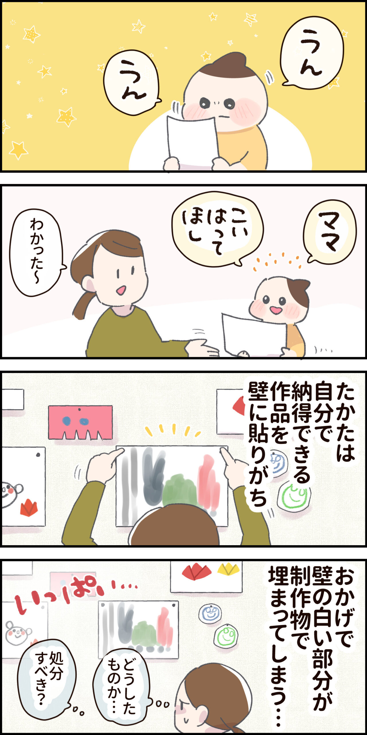 子どもの作品を処分するタイミング 2024.05.26 日常 子どもの作品を処分するタイミング あとがき もう画廊みたいな家に するしかないか〜!!? よくある休日の過ごし方 「うちの子天才!」を毎日繰り返す親の心情について お掃除よんしゃい こんな思い切った線や色を出すのは なかなかできないよね〜って 作品作ってくる〜! 0 コメントはこちら 同じカテゴリの記事 ワンテンポ遅い親の気付き おしっこもってくの!? パパのアドバイスを受け止める 連載一覧 寒さ対策 不審者にならないために 赤ちゃんがうなる理由 インフルエンザの予防接種に行ってきた! 5歳の娘の不思議な質問!?【ASOPPA!連載】 毎年恒例のおせちの選び方! 雨の日にお外に行ってはいけないよ 臓器なのにかわいい? 子どもの心臓の音を聞いて親が気づいた大切なこと【ASOPPA!連載】 ヤマトじゃない 夫が北海道に行くらしい 撮ってると思って身構えたのに……主役はまさかの“そっち側”だった【ASOPPA!連載】 初めてのたこ焼き作るよ!【後編】 初めてのたこ焼き作るよ!【前編】 9月になったので年末の準備をはじめる! 園で拾ったピンクの石を交換した娘……ほっこりする話かと思いきや、まさかの展開に母ダッシュ【ASOPPA!連載】 LINEスタンプ、配信開始しました! 自信満々な5さい 祭りの花火、音と煙で怖いかな?泣いちゃうかな……!?【ASOPPA!連載】 「乗ってもいいの?」遠慮する5歳を飛行機ポーズで飛ばしてみたら…【ASOPPA!連載】 おしゃれな本棚を作りたい! ママみて!が止まらない 大人がうんていにチャレンジしたら、肩からすごい音が…【ASOPPA!連載】 たかた、全集中〇〇の型 お菓子警察、もう騙されない ママって魔法使い!?ペットボトルを使った水あそびでサイエンスごっこ【ASOPPA!連載】 セルフまつパにチャレンジしてみた話 ランドセルの話をしてただけなのに……先生の声が少し変わった瞬間のこと【ASOPPA!連載】とお知らせ なんにでも才能を見出しちゃう親 ママのヒントがまさかの罠!?しりとり中に飛び出した言い間違いに思わずにっこり【ASOPPA!連載】 無意識に自分を下げてしまうことがある かわいいすぎてずるいって話と書籍PR 星がふえると、なんだかうれしい!七夕の“飛ばし絵”あそび【ASOPPA!連載】 5さい、指先の皮がボロボロ… からあげってどんな味がする!? 君が生まれたばかりの世界は……5歳の誕生日に感じた子どもの成長【ASOPPA!連載】 わずかなヒントから答えを探し出せ! カレーうどんってどんな味?5歳の素直な感想にパパ思わず感心【ASOPPA!連載】 ダメージ加工ってさ… 「1たす1は11?」5歳児のピュアな計算ミスに母、胸キュン【ASOPPA!連載】 記念すべき?歯が抜けた話【後編】 記念すべき?歯が抜けた話【中編】 記念すべき?歯が抜けた話【前編】 各方面への配慮 懐かしくて、ちょっとしょっぱい。大人になって気づいた、駄菓子とのちょうどいい距離感【ASOPPA!連載】 緊張しいのたかた【後編】七五三の前撮り 緊張しいのたかた【前編】七五三の前撮り ここまでくるのに5年かかりました 生放送でお名前を呼ばれたい 泥団子を極めしもの ピーピー豆とおままごと 「パパだけ保育園に行くね」と言ったら、娘の返答がまさかの本気モードで笑っちゃう!【ASOPPA!連載】 見せたい自信作 ねぇ、あれってなんだっけ? ドレスを選ぶ基準【後編】七五三の前撮り ドレスを選ぶ基準【前編】七五三の前撮り 泣くのって悪いこと?【後編】 泣くのって悪いこと?【前編】 ありがとうじゃなくて……!?5歳にお礼を促した結果に笑っちゃう【ASOPPA!連載】 もう七五三するの!?【後編】 もう七五三するの!?【前編】 パパのおしり拭き おいしいお薬を食べてみた 君が赤ちゃんのときの話 一体何を見つけたの〜!?子どもと過ごす春は発見とハプニングの連続だ!【ASOPPA!連載】 ゆふいんの森号に乗りたい親子 2025春のパン祭り経過 冷蔵庫にゼリーがあるぞ! 「せ」の音はどこ?ピアノで遊ぶ4歳の純粋な疑問にパパ困惑 【ASOPPA!連載】 アマゾンってなに? タブレットに不正アクセスされた話 そろそろ「たかた」を卒業させたい 「まごわやさしい」の「い」はまさかの……!?4歳の自由すぎる発想に思わず笑顔に【ASOPPA!連載】 名前の練習ってどうする?我が家のゆるっと入園準備 【ASOPPA!連載】 ついにこの時がやってきた オンラインフィットネス「サーティフィット」で理想の体を目指す話④ ご報告 私もかわいいの!赤ちゃん時代の写真を見た4歳児の反応にほっこり【ASOPPA!連載】 今年もパン祭りがはじまった お散歩が楽しみすぎる4歳!着替えながらお片付け……できちゃうの!?【ASOPPA!連載】 4歳、歯科がこわい ほぼ売れ切れのご飯屋さんの正体 いつものおやつを特別にする?とびきりの裏技 かわいい4歳の指を借りて……バレンタインのかわいいお菓子を一緒に手作り【ASOPPA!連載】 オンラインフィットネス「サーティフィット」で理想の体を目指す話③ 断られても気にしないメンタル 疲れた母をどうにかする4才 手に余ったクリームを… 体調が悪くなると変な想像するよね? 2025年