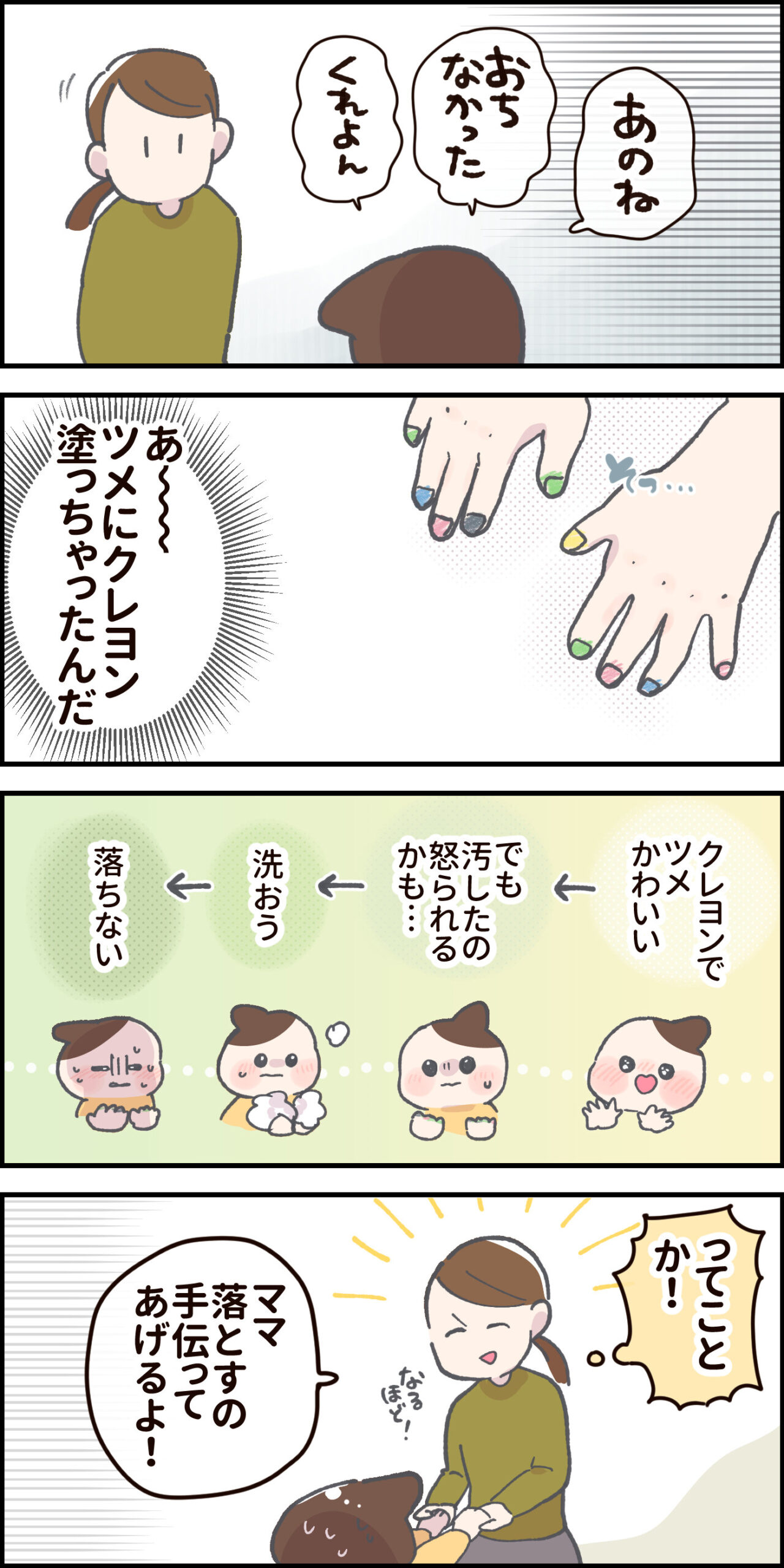 いたずらした後の話【前編】 2024.06.26 日常 いたずらした後の話【前編】 あとがき ちょっと長くなったので 次回に続けます! 次回 いたずらした後の話【後編】 不穏な誕生日プレゼント 4歳VS勧誘電話【前編】 気持ちはわかるんだよねぇ〜 ツメがかわいいと テンション上がるもんね ▼次回はこちら いたずらした後の話【後編】 0 コメントはこちら 同じカテゴリの記事 ワンテンポ遅い親の気付き おしっこもってくの!? パパのアドバイスを受け止める 連載一覧 寒さ対策 不審者にならないために 赤ちゃんがうなる理由 インフルエンザの予防接種に行ってきた! 5歳の娘の不思議な質問!?【ASOPPA!連載】 毎年恒例のおせちの選び方! 雨の日にお外に行ってはいけないよ 臓器なのにかわいい? 子どもの心臓の音を聞いて親が気づいた大切なこと【ASOPPA!連載】 ヤマトじゃない 夫が北海道に行くらしい 撮ってると思って身構えたのに……主役はまさかの“そっち側”だった【ASOPPA!連載】 初めてのたこ焼き作るよ!【後編】 初めてのたこ焼き作るよ!【前編】 9月になったので年末の準備をはじめる! 園で拾ったピンクの石を交換した娘……ほっこりする話かと思いきや、まさかの展開に母ダッシュ【ASOPPA!連載】 LINEスタンプ、配信開始しました! 自信満々な5さい 祭りの花火、音と煙で怖いかな?泣いちゃうかな……!?【ASOPPA!連載】 「乗ってもいいの?」遠慮する5歳を飛行機ポーズで飛ばしてみたら…【ASOPPA!連載】 おしゃれな本棚を作りたい! ママみて!が止まらない 大人がうんていにチャレンジしたら、肩からすごい音が…【ASOPPA!連載】 たかた、全集中〇〇の型 お菓子警察、もう騙されない ママって魔法使い!?ペットボトルを使った水あそびでサイエンスごっこ【ASOPPA!連載】 セルフまつパにチャレンジしてみた話 ランドセルの話をしてただけなのに……先生の声が少し変わった瞬間のこと【ASOPPA!連載】とお知らせ なんにでも才能を見出しちゃう親 ママのヒントがまさかの罠!?しりとり中に飛び出した言い間違いに思わずにっこり【ASOPPA!連載】 無意識に自分を下げてしまうことがある かわいいすぎてずるいって話と書籍PR 星がふえると、なんだかうれしい!七夕の“飛ばし絵”あそび【ASOPPA!連載】 5さい、指先の皮がボロボロ… からあげってどんな味がする!? 君が生まれたばかりの世界は……5歳の誕生日に感じた子どもの成長【ASOPPA!連載】 わずかなヒントから答えを探し出せ! カレーうどんってどんな味?5歳の素直な感想にパパ思わず感心【ASOPPA!連載】 ダメージ加工ってさ… 「1たす1は11?」5歳児のピュアな計算ミスに母、胸キュン【ASOPPA!連載】 記念すべき?歯が抜けた話【後編】 記念すべき?歯が抜けた話【中編】 記念すべき?歯が抜けた話【前編】 各方面への配慮 懐かしくて、ちょっとしょっぱい。大人になって気づいた、駄菓子とのちょうどいい距離感【ASOPPA!連載】 緊張しいのたかた【後編】七五三の前撮り 緊張しいのたかた【前編】七五三の前撮り ここまでくるのに5年かかりました 生放送でお名前を呼ばれたい 泥団子を極めしもの ピーピー豆とおままごと 「パパだけ保育園に行くね」と言ったら、娘の返答がまさかの本気モードで笑っちゃう!【ASOPPA!連載】 見せたい自信作 ねぇ、あれってなんだっけ? ドレスを選ぶ基準【後編】七五三の前撮り ドレスを選ぶ基準【前編】七五三の前撮り 泣くのって悪いこと?【後編】 泣くのって悪いこと?【前編】 ありがとうじゃなくて……!?5歳にお礼を促した結果に笑っちゃう【ASOPPA!連載】 もう七五三するの!?【後編】 もう七五三するの!?【前編】 パパのおしり拭き おいしいお薬を食べてみた 君が赤ちゃんのときの話 一体何を見つけたの〜!?子どもと過ごす春は発見とハプニングの連続だ!【ASOPPA!連載】 ゆふいんの森号に乗りたい親子 2025春のパン祭り経過 冷蔵庫にゼリーがあるぞ! 「せ」の音はどこ?ピアノで遊ぶ4歳の純粋な疑問にパパ困惑 【ASOPPA!連載】 アマゾンってなに? タブレットに不正アクセスされた話 そろそろ「たかた」を卒業させたい 「まごわやさしい」の「い」はまさかの……!?4歳の自由すぎる発想に思わず笑顔に【ASOPPA!連載】 名前の練習ってどうする?我が家のゆるっと入園準備 【ASOPPA!連載】 ついにこの時がやってきた オンラインフィットネス「サーティフィット」で理想の体を目指す話④ ご報告 私もかわいいの!赤ちゃん時代の写真を見た4歳児の反応にほっこり【ASOPPA!連載】 今年もパン祭りがはじまった お散歩が楽しみすぎる4歳!着替えながらお片付け……できちゃうの!?【ASOPPA!連載】 4歳、歯科がこわい ほぼ売れ切れのご飯屋さんの正体 いつものおやつを特別にする?とびきりの裏技 かわいい4歳の指を借りて……バレンタインのかわいいお菓子を一緒に手作り【ASOPPA!連載】 オンラインフィットネス「サーティフィット」で理想の体を目指す話③ 断られても気にしないメンタル 疲れた母をどうにかする4才 手に余ったクリームを… 体調が悪くなると変な想像するよね? 2