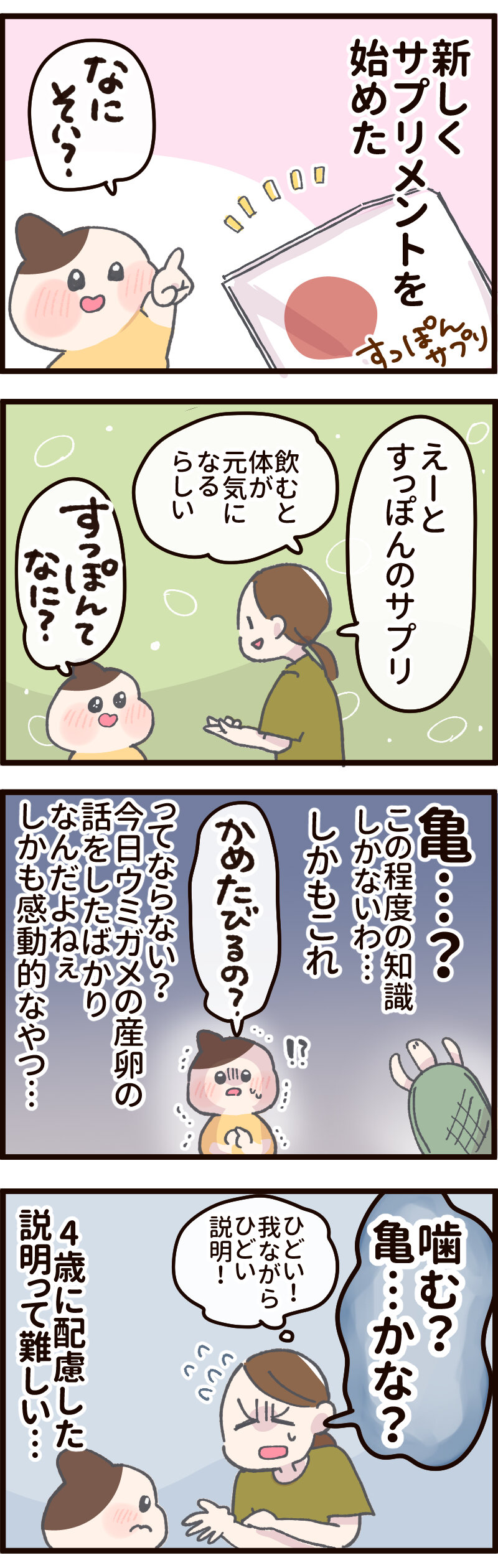 すっぽんを優しく説明したい 2024.07.23 日常 すっぽんを優しく説明したい ☆お知らせ☆ LINEスタンプをリリースしました! ぜひ使ってみてね〜!! エブリディたかた‐LINEスタンプ あとがき 私もあんまり詳しくないから、 ふわっとした説明になっちゃった… 小さい「やゆよ」を教えたい! 3さいが『ネクタイ』の説明をすると… 知らないゲームをどう説明しよっか? 1=1? うーん、割り切って説明するべきだったのかなぁ? 0 コメントはこちら 同じカテゴリの記事 ワンテンポ遅い親の気付き おしっこもってくの!? パパのアドバイスを受け止める 連載一覧 寒さ対策 不審者にならないために 赤ちゃんがうなる理由 インフルエンザの予防接種に行ってきた! 5歳の娘の不思議な質問!?【ASOPPA!連載】 毎年恒例のおせちの選び方! 雨の日にお外に行ってはいけないよ 臓器なのにかわいい? 子どもの心臓の音を聞いて親が気づいた大切なこと【ASOPPA!連載】 ヤマトじゃない 夫が北海道に行くらしい 撮ってると思って身構えたのに……主役はまさかの“そっち側”だった【ASOPPA!連載】 初めてのたこ焼き作るよ!【後編】 初めてのたこ焼き作るよ!【前編】 9月になったので年末の準備をはじめる! 園で拾ったピンクの石を交換した娘……ほっこりする話かと思いきや、まさかの展開に母ダッシュ【ASOPPA!連載】 LINEスタンプ、配信開始しました! 自信満々な5さい 祭りの花火、音と煙で怖いかな?泣いちゃうかな……!?【ASOPPA!連載】 「乗ってもいいの?」遠慮する5歳を飛行機ポーズで飛ばしてみたら…【ASOPPA!連載】 おしゃれな本棚を作りたい! ママみて!が止まらない 大人がうんていにチャレンジしたら、肩からすごい音が…【ASOPPA!連載】 たかた、全集中〇〇の型 お菓子警察、もう騙されない ママって魔法使い!?ペットボトルを使った水あそびでサイエンスごっこ【ASOPPA!連載】 セルフまつパにチャレンジしてみた話 ランドセルの話をしてただけなのに……先生の声が少し変わった瞬間のこと【ASOPPA!連載】とお知らせ なんにでも才能を見出しちゃう親 ママのヒントがまさかの罠!?しりとり中に飛び出した言い間違いに思わずにっこり【ASOPPA!連載】 無意識に自分を下げてしまうことがある かわいいすぎてずるいって話と書籍PR 星がふえると、なんだかうれしい!七夕の“飛ばし絵”あそび【ASOPPA!連載】 5さい、指先の皮がボロボロ… からあげってどんな味がする!? 君が生まれたばかりの世界は……5歳の誕生日に感じた子どもの成長【ASOPPA!連載】 わずかなヒントから答えを探し出せ! カレーうどんってどんな味?5歳の素直な感想にパパ思わず感心【ASOPPA!連載】 ダメージ加工ってさ… 「1たす1は11?」5歳児のピュアな計算ミスに母、胸キュン【ASOPPA!連載】 記念すべき?歯が抜けた話【後編】 記念すべき?歯が抜けた話【中編】 記念すべき?歯が抜けた話【前編】 各方面への配慮 懐かしくて、ちょっとしょっぱい。大人になって気づいた、駄菓子とのちょうどいい距離感【ASOPPA!連載】 緊張しいのたかた【後編】七五三の前撮り 緊張しいのたかた【前編】七五三の前撮り ここまでくるのに5年かかりました 生放送でお名前を呼ばれたい 泥団子を極めしもの ピーピー豆とおままごと 「パパだけ保育園に行くね」と言ったら、娘の返答がまさかの本気モードで笑っちゃう!【ASOPPA!連載】 見せたい自信作 ねぇ、あれってなんだっけ? ドレスを選ぶ基準【後編】七五三の前撮り ドレスを選ぶ基準【前編】七五三の前撮り 泣くのって悪いこと?【後編】 泣くのって悪いこと?【前編】 ありがとうじゃなくて……!?5歳にお礼を促した結果に笑っちゃう【ASOPPA!連載】 もう七五三するの!?【後編】 もう七五三するの!?【前編】 パパのおしり拭き おいしいお薬を食べてみた 君が赤ちゃんのときの話 一体何を見つけたの〜!?子どもと過ごす春は発見とハプニングの連続だ!【ASOPPA!連載】 ゆふいんの森号に乗りたい親子 2025春のパン祭り経過 冷蔵庫にゼリーがあるぞ! 「せ」の音はどこ?ピアノで遊ぶ4歳の純粋な疑問にパパ困惑 【ASOPPA!連載】 アマゾンってなに? タブレットに不正アクセスされた話 そろそろ「たかた」を卒業させたい 「まごわやさしい」の「い」はまさかの……!?4歳の自由すぎる発想に思わず笑顔に【ASOPPA!連載】 名前の練習ってどうする?我が家のゆるっと入園準備 【ASOPPA!連載】 ついにこの時がやってきた オンラインフィットネス「サーティフィット」で理想の体を目指す話④ ご報告 私もかわいいの!赤ちゃん時代の写真を見た4歳児の反応にほっこり【ASOPPA!連載】 今年もパン祭りがはじまった お散歩が楽しみすぎる4歳!着替えながらお片付け……できちゃうの!?【ASOPPA!連載】 4歳、歯科がこわい ほぼ売れ切れのご飯屋さんの正体 いつものおやつを特別にする?とびきりの裏技 かわいい4歳の指を借りて……バレンタインのかわいいお菓子を一緒に手作り【ASOPPA!連載】 オンラインフィットネス「サーティフィット」で理想の体を目指す話③ 断られても気にしないメンタル 疲れ
