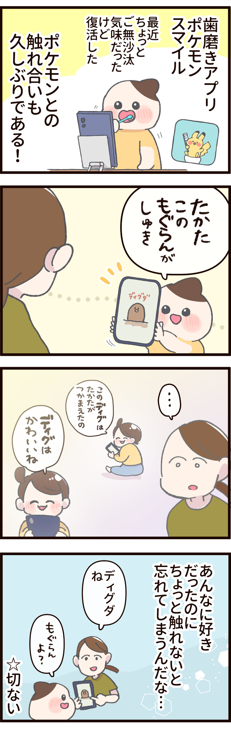 バトルシーンが怖いみたいでまだポケモンは歯磨きアプリだけです