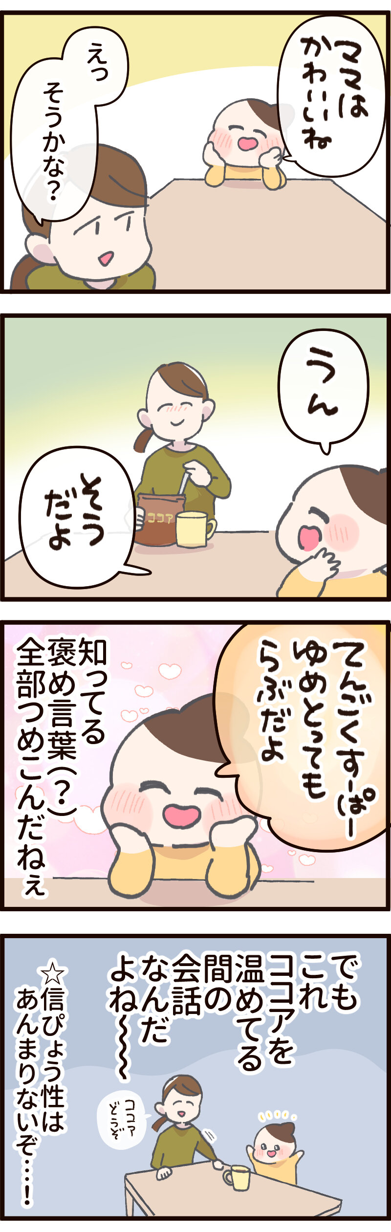 4さい母を褒める、けど… 2024.10.22 日常 4さい母を褒める、けど… あとがき それってほんとに思ってるぅ〜??? 褒めたらちょっと量が増えるかもとか 思ってないぃ〜〜??? 4歳、夏の豆知識を披露する 世界で1番かわいいミス 4歳、母を笑顔にしたい 疑心暗鬼な母です😂 普段たかたから容姿を褒められることはないのでちょっと訝しんで見ちゃう…… 0 コメントはこちら 同じカテゴリの記事 ワンテンポ遅い親の気付き おしっこもってくの!? パパのアドバイスを受け止める 連載一覧 寒さ対策 不審者にならないために 赤ちゃんがうなる理由 インフルエンザの予防接種に行ってきた! 5歳の娘の不思議な質問!?【ASOPPA!連載】 毎年恒例のおせちの選び方! 雨の日にお外に行ってはいけないよ 臓器なのにかわいい? 子どもの心臓の音を聞いて親が気づいた大切なこと【ASOPPA!連載】 ヤマトじゃない 夫が北海道に行くらしい 撮ってると思って身構えたのに……主役はまさかの“そっち側”だった【ASOPPA!連載】 初めてのたこ焼き作るよ!【後編】 初めてのたこ焼き作るよ!【前編】 9月になったので年末の準備をはじめる! 園で拾ったピンクの石を交換した娘……ほっこりする話かと思いきや、まさかの展開に母ダッシュ【ASOPPA!連載】 LINEスタンプ、配信開始しました! 自信満々な5さい 祭りの花火、音と煙で怖いかな?泣いちゃうかな……!?【ASOPPA!連載】 「乗ってもいいの?」遠慮する5歳を飛行機ポーズで飛ばしてみたら…【ASOPPA!連載】 おしゃれな本棚を作りたい! ママみて!が止まらない 大人がうんていにチャレンジしたら、肩からすごい音が…【ASOPPA!連載】 たかた、全集中〇〇の型 お菓子警察、もう騙されない ママって魔法使い!?ペットボトルを使った水あそびでサイエンスごっこ【ASOPPA!連載】 セルフまつパにチャレンジしてみた話 ランドセルの話をしてただけなのに……先生の声が少し変わった瞬間のこと【ASOPPA!連載】とお知らせ なんにでも才能を見出しちゃう親 ママのヒントがまさかの罠!?しりとり中に飛び出した言い間違いに思わずにっこり【ASOPPA!連載】 無意識に自分を下げてしまうことがある かわいいすぎてずるいって話と書籍PR 星がふえると、なんだかうれしい!七夕の“飛ばし絵”あそび【ASOPPA!連載】 5さい、指先の皮がボロボロ… からあげってどんな味がする!? 君が生まれたばかりの世界は……5歳の誕生日に感じた子どもの成長【ASOPPA!連載】 わずかなヒントから答えを探し出せ! カレーうどんってどんな味?5歳の素直な感想にパパ思わず感心【ASOPPA!連載】 ダメージ加工ってさ… 「1たす1は11?」5歳児のピュアな計算ミスに母、胸キュン【ASOPPA!連載】 記念すべき?歯が抜けた話【後編】 記念すべき?歯が抜けた話【中編】 記念すべき?歯が抜けた話【前編】 各方面への配慮 懐かしくて、ちょっとしょっぱい。大人になって気づいた、駄菓子とのちょうどいい距離感【ASOPPA!連載】 緊張しいのたかた【後編】七五三の前撮り 緊張しいのたかた【前編】七五三の前撮り ここまでくるのに5年かかりました 生放送でお名前を呼ばれたい 泥団子を極めしもの ピーピー豆とおままごと 「パパだけ保育園に行くね」と言ったら、娘の返答がまさかの本気モードで笑っちゃう!【ASOPPA!連載】 見せたい自信作 ねぇ、あれってなんだっけ? ドレスを選ぶ基準【後編】七五三の前撮り ドレスを選ぶ基準【前編】七五三の前撮り 泣くのって悪いこと?【後編】 泣くのって悪いこと?【前編】 ありがとうじゃなくて……!?5歳にお礼を促した結果に笑っちゃう【ASOPPA!連載】 もう七五三するの!?【後編】 もう七五三するの!?【前編】 パパのおしり拭き おいしいお薬を食べてみた 君が赤ちゃんのときの話 一体何を見つけたの〜!?子どもと過ごす春は発見とハプニングの連続だ!【ASOPPA!連載】 ゆふいんの森号に乗りたい親子 2025春のパン祭り経過 冷蔵庫にゼリーがあるぞ! 「せ」の音はどこ?ピアノで遊ぶ4歳の純粋な疑問にパパ困惑 【ASOPPA!連載】 アマゾンってなに? タブレットに不正アクセスされた話 そろそろ「たかた」を卒業させたい 「まごわやさしい」の「い」はまさかの……!?4歳の自由すぎる発想に思わず笑顔に【ASOPPA!連載】 名前の練習ってどうする?我が家のゆるっと入園準備 【ASOPPA!連載】 ついにこの時がやってきた オンラインフィットネス「サーティフィット」で理想の体を目指す話④ ご報告 私もかわいいの!赤ちゃん時代の写真を見た4歳児の反応にほっこり【ASOPPA!連載】 今年もパン祭りがはじまった お散歩が楽しみすぎる4歳!着替えながらお片付け……できちゃうの!?【ASOPPA!連載】 4歳、歯科がこわい ほぼ売れ切れのご飯屋さんの正体 いつものおやつを特別にする?とびきりの裏技 かわいい4歳の指を借りて……バレンタインのかわいいお菓子を一緒に手作り【ASOPPA!連載】 オンラインフィットネス「サーティフィット」で理想の体を目指す話③ 断られても気にしないメンタル 疲れた母をどうにかする4才 手に余ったクリームを… 体調が悪くなると