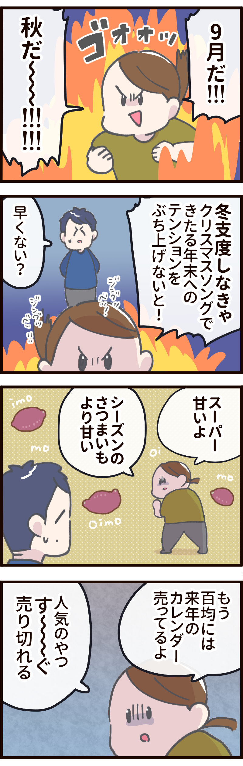 9月になったので年末の準備をはじめる! 2025.09.14 日常 9月になったので年末の準備をはじめる! LINEスタンプ配信開始しました! ▼こちらから エブリディたかた2 もう9月も半ばで震えている…… これ以外にも日常生活をしないといけないわけで 早め早めにしないとと思うんですが 気付いたら12月になりますからね! 来年は小学校入学なので 就学準備もしないとですね〜 健康診断表は届いたけど 他に何をしておけばいいのか不安…… クリスマスなどの欠かせないイベントも 少しずつ準備しないとね! ▼こうあってもこうなる 大掃除を明日の自分に託しすぎた結果… いらない!何も!捨ててしまおう!期 毎年やってくる、恐怖の『アレ』 おまけ 3ヶ月表記のカレンダー便利です! 100円ショップにも売ってるけど すぐになくなるので チェックしておくのおすすめ! 2ヶ月先の予定が書き込めるから 園の行事を家族で共有するのに便利 ▼今月のカレンダー壁紙もよろしくね! 9月のカレンダー壁紙プレゼント&8月のまとめ🌰 \電子書籍げんきに配信中/ 広告 まいにちふりまわされてます 3 Kindle楽天ブックス まいにちふりまわされてます 2 Kindle楽天ブックス まいにちふりまわされてます 1 Kindle楽天ブックス 0 コメントはこちら 同じカテゴリの記事 ワンテンポ遅い親の気付き おしっこもってくの!? パパのアドバイスを受け止める 連載一覧 寒さ対策 不審者にならないために 赤ちゃんがうなる理由 インフルエンザの予防接種に行ってきた! 5歳の娘の不思議な質問!?【ASOPPA!連載】 毎年恒例のおせちの選び方! 雨の日にお外に行ってはいけないよ 臓器なのにかわいい? 子どもの心臓の音を聞いて親が気づいた大切なこと【ASOPPA!連載】 ヤマトじゃない 夫が北海道に行くらしい 撮ってると思って身構えたのに……主役はまさかの“そっち側”だった【ASOPPA!連載】 初めてのたこ焼き作るよ!【後編】 初めてのたこ焼き作るよ!【前編】 9月になったので年末の準備をはじめる! 園で拾ったピンクの石を交換した娘……ほっこりする話かと思いきや、まさかの展開に母ダッシュ【ASOPPA!連載】 LINEスタンプ、配信開始しました! 自信満々な5さい 祭りの花火、音と煙で怖いかな?泣いちゃうかな……!?【ASOPPA!連載】 「乗ってもいいの?」遠慮する5歳を飛行機ポーズで飛ばしてみたら…【ASOPPA!連載】 おしゃれな本棚を作りたい! ママみて!が止まらない 大人がうんていにチャレンジしたら、肩からすごい音が…【ASOPPA!連載】 たかた、全集中〇〇の型 お菓子警察、もう騙されない ママって魔法使い!?ペットボトルを使った水あそびでサイエンスごっこ【ASOPPA!連載】 セルフまつパにチャレンジしてみた話 ランドセルの話をしてただけなのに……先生の声が少し変わった瞬間のこと【ASOPPA!連載】とお知らせ なんにでも才能を見出しちゃう親 ママのヒントがまさかの罠!?しりとり中に飛び出した言い間違いに思わずにっこり【ASOPPA!連載】 無意識に自分を下げてしまうことがある かわいいすぎてずるいって話と書籍PR 星がふえると、なんだかうれしい!七夕の“飛ばし絵”あそび【ASOPPA!連載】 5さい、指先の皮がボロボロ… からあげってどんな味がする!? 君が生まれたばかりの世界は……5歳の誕生日に感じた子どもの成長【ASOPPA!連載】 わずかなヒントから答えを探し出せ! カレーうどんってどんな味?5歳の素直な感想にパパ思わず感心【ASOPPA!連載】 ダメージ加工ってさ… 「1たす1は11?」5歳児のピュアな計算ミスに母、胸キュン【ASOPPA!連載】 記念すべき?歯が抜けた話【後編】 記念すべき?歯が抜けた話【中編】 記念すべき?歯が抜けた話【前編】 各方面への配慮 懐かしくて、ちょっとしょっぱい。大人になって気づいた、駄菓子とのちょうどいい距離感【ASOPPA!連載】 緊張しいのたかた【後編】七五三の前撮り 緊張しいのたかた【前編】七五三の前撮り ここまでくるのに5年かかりました 生放送でお名前を呼ばれたい 泥団子を極めしもの ピーピー豆とおままごと 「パパだけ保育園に行くね」と言ったら、娘の返答がまさかの本気モードで笑っちゃう!【ASOPPA!連載】 見せたい自信作 ねぇ、あれってなんだっけ? ドレスを選ぶ基準【後編】七五三の前撮り ドレスを選ぶ基準【前編】七五三の前撮り 泣くのって悪いこと?【後編】 泣くのって悪いこと?【前編】 ありがとうじゃなくて……!?5歳にお礼を促した結果に笑っちゃう【ASOPPA!連載】 もう七五三するの!?【後編】 もう七五三するの!?【前編】 パパのおしり拭き おいしいお薬を食べてみた 君が赤ちゃんのときの話 一体何を見つけたの〜!?子どもと過ごす春は発見とハプニングの連続だ!【ASOPPA!連載】 ゆふいんの森号に乗りたい親子 2025春のパン祭り経過 冷蔵庫にゼリーがあるぞ! 「せ」の音はどこ?ピアノで遊ぶ4歳の純粋な疑問にパパ困惑 【ASOPPA!連載】 アマゾンってなに? タブレットに不正アクセスされた話 そろそろ「たかた」を卒業させたい 「まごわやさしい」の「い」はまさかの……!?4歳の自由すぎる発想に思わず笑顔に【A