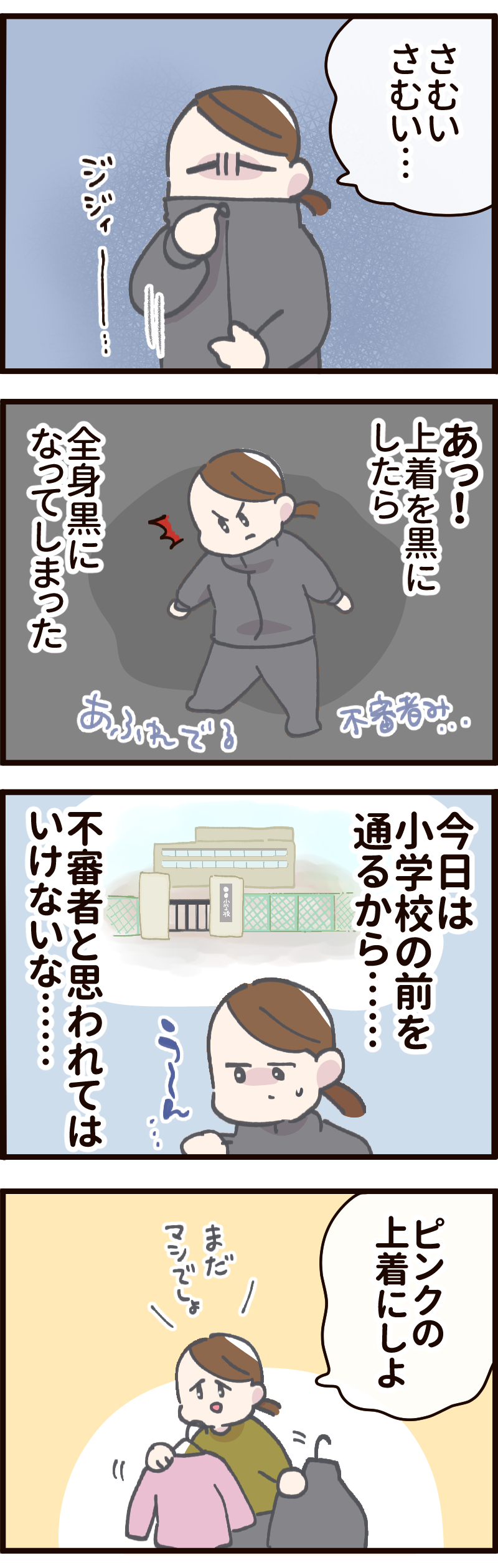 全身黒になると不審者みが強いので